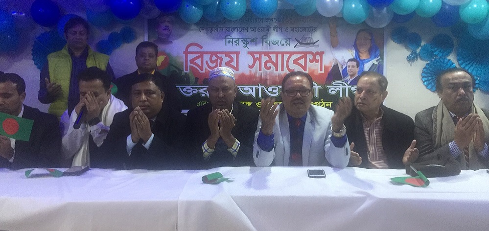 আওয়ামী লীগ তথা মহাজোট প্রার্থীদের বিশাল বিজয়ে যুক্তরাষ্ট্র আওয়ামী লীগের ব্যানারে আরেকটি বিজয় সমাবেশ হয় ভারপ্রাপ্ত সভাপতি মুক্তিযোদ্ধা মাহববুবুর রহমানের নেতৃত্বে। এ সমাবেশ পরিচালনা করেন সেক্রেটারি মহিউদ্দিন দেওয়ান। শুরুতে প্রধানমন্ত্রী ও বাংলাদেশ আওয়ামী লীগের সভাপতি শেখ হাসিনার দীর্ঘায়ু ও সুস্বাস্থ্য কামনায় বিশেষ মোনাজাত অনুষ্ঠিত হয়। এরপর মুক্তিযুদ্ধের চেতনার প্রাথীদের বিরাট বিজয় প্রদানের জন্যে ভোটারদের গভীর কৃতজ্ঞতা জানিয়ে বক্তব্য রাখেন সৈয়দ বসারত আলী, লুৎফুল করিম, শামসুদ্দিন আজাদ, আবুল হাসিব মামুন, সোলায়মান আলী, স্বেচ্ছাসেবক লীগের কেন্দ্রীয় আন্তর্জাতিক বিষয়ক সম্পাদক সাখাওয়াত বিশ্বাস, যুক্তরাষ্ট্র স্বেচ্ছাসেবক লীগের সেক্রেটারি সুবল দেবনাথ, যুক্তরাষ্ট্র আওয়ামী লীগের উপ-দপ্তর সম্পাদক আব্দুৃল মালেক, উপ-প্রচার সম্পাদক তৈয়বুর রহমান টনি প্রমুখ।