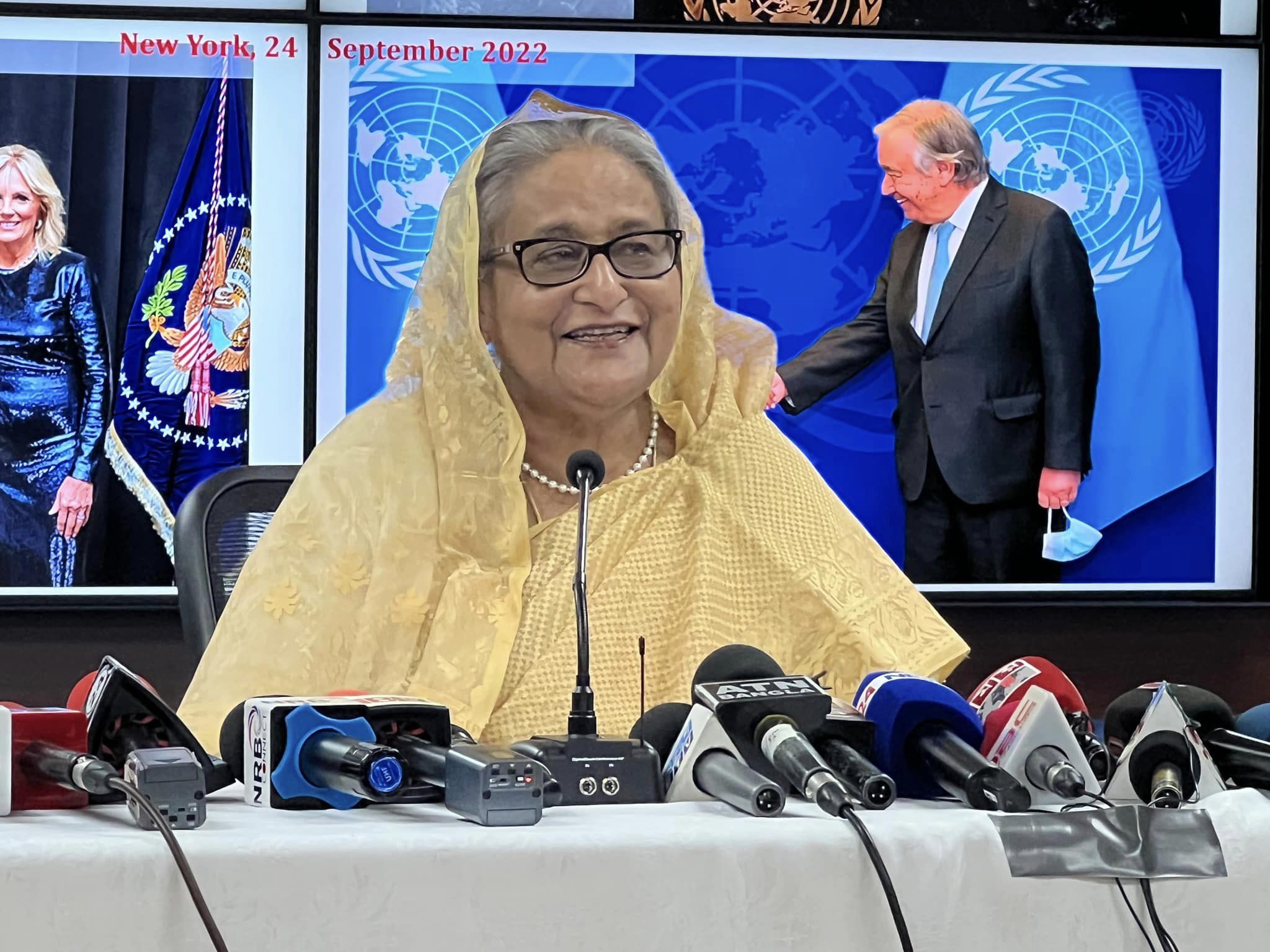 জাতিসংঘের ৭৭তম অধিবেশনে যোগদান শেষে ২৪ সেপ্টেম্বর নিউইয়র্কস্থ জাতিসংঘে বাংলাদেশ স্থায়ী মিশনে আয়োজিত এক সংবাদ সম্মেলনে এক প্রশ্নের জবাবে প্রধানমন্ত্রী এ কথা বলেন।