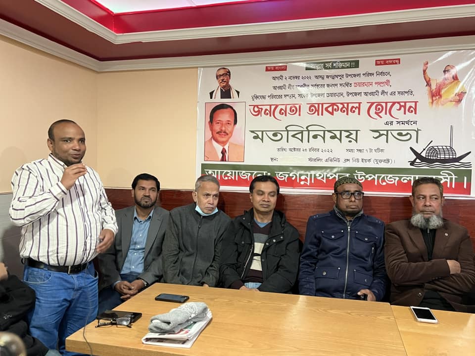 জগন্নাথপুর উপজেলা পরিষদ নির্বাচন আগামী ২ নভেম্বর ২০২২ : আওয়ামী লীগ মনোনীত চেয়ারম্যান পদপ্রার্থী আকমল হোসেনের সমর্থনে নিউইয়র্কে মত বিনিময় সভা (ভিডিও সহ)