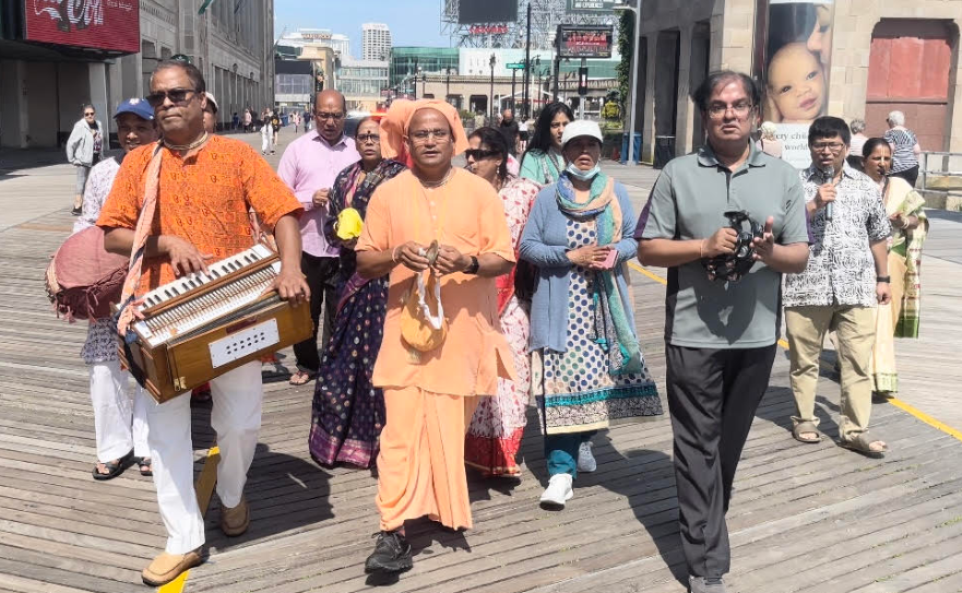 আটলান্টিক সিটি থেকে সুব্রত চৌধুরী: ১৪ জুন, মংগলবার। খিল ধরা দুপুরে সূর্য দেবতাকে মাথার উপর রেখে ভক্তকূলের পদচারনায় মুখরিত হতে থাকে যুক্তরাষ্ট্রের নিউজারসি অঙ্গরাজ্যের আটলান্টিক সিটির ঐতিহাসিক বোর্ডওয়ার্ক। আটলান্টিক মহাসাগর থেকে ধেয়ে আসা ঊর্মিমালার শব্দ তরঙ্গকে ছাপিয়ে ইথারে ভেসে আসে হরি্নাম সংকীর্তনের সুললিত সুর- ‘হরে কৃষ্ণ, হরে কৃষ্ণ, হরে রাম, হরে রাম’। অদ্ভুত এক ভালোলাগায় আছন্ন হয়ে পড়ে মন-প্রাণ। আর এসবের উপলক্ষ “নগর সংকীর্তন”, আটলান্টিক সিটির ইতিহাসে যা প্রথমবারের মতো অনুষ্ঠিত হলো।