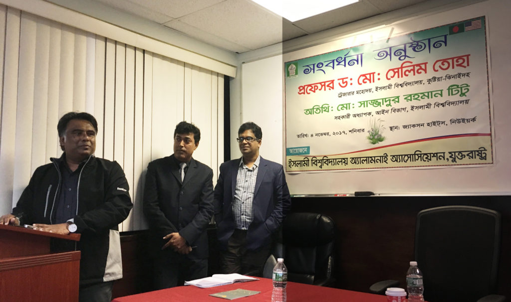উল্লেখ্য, যুক্তরাষ্ট্র সফররত ইসলামী বিশ্ববিদ্যালয়ের কোন শিক্ষক ও শীর্ষ স্থানীয় কর্মকর্তাকে নিয়ে এটা প্রথম অনুষ্ঠান। সংবর্ধনা অনুষ্ঠান ইসলামী বিশ্ববিদ্যালয় অ্যালামনাই অ্যাসোসিয়েশন, যুক্তরাষ্ট্র ব্যানারে হলেও এটা কমিটি বিহিন একটা সংগঠন।