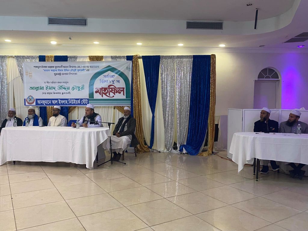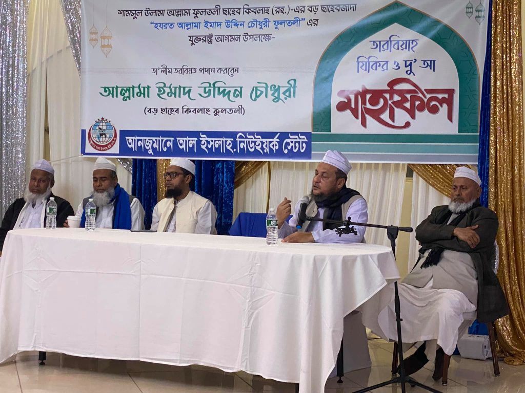 আনজুমানে আল-ইসলাহ ইউএসএ’র নিউইয়র্ক স্টেট কমিটির সভাপতি মাওলানা শাব্বির আহমেদ এর সভাপতিত্বে ও আনজুমানে আল ইসলাহ ইউ এস এ র স্থায়ী কমিটির সদস্য মাওলানা আবুল কাশেম ইয়াহয়ার পরিচালনায় অনুষ্ঠিত মাহফিলে কোরআন পাক থেকে তিলাওয়াত করেন ক্বারী মাওলানা এডভোকেট আশিক আহমেদ খান এবং পবিত্র নাতে রাসুল (সাঃ) পরিবেশন করেন ক্বারী আবিদুর রহমান।