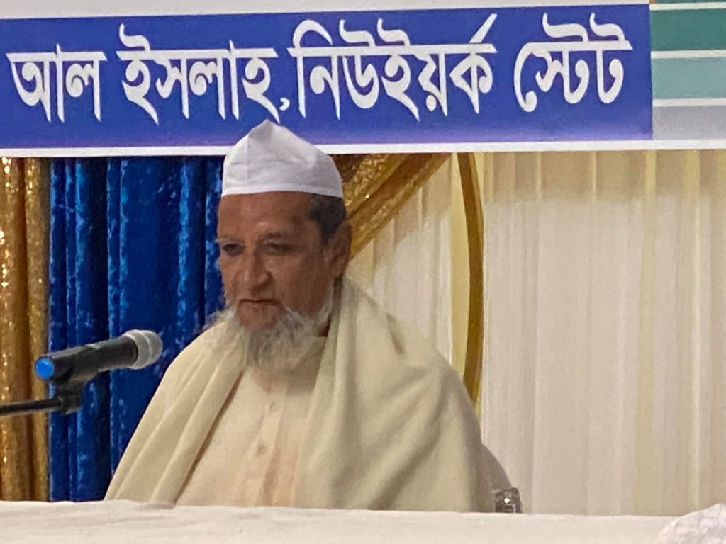 আনজুমানে আল ইসলাহ’র নিউইয়র্ক স্টেট কমিটি আয়োজিত তরবিয়ত, যিকর ও দু’আ মাহফিল অনুষ্ঠানে প্রধান অতিথির বক্তব্যে তিনি এ কথা বলেন। তিনি আরো বলেন, ইসলাম আল্লাহর মনোনীত শ্রেষ্ঠ দ্বীন। অন্যান্য দ্বীনের সাথে এর তুলনা করলে আমাদের মাথা সিজদাবনত হয়ে বলতে বাধ্য হবে- আল্লাহ ছাড়া কোনো মা’বুদ নেই এবং মুহাম্মদ (সা.) আল্লাহর রাসূল।