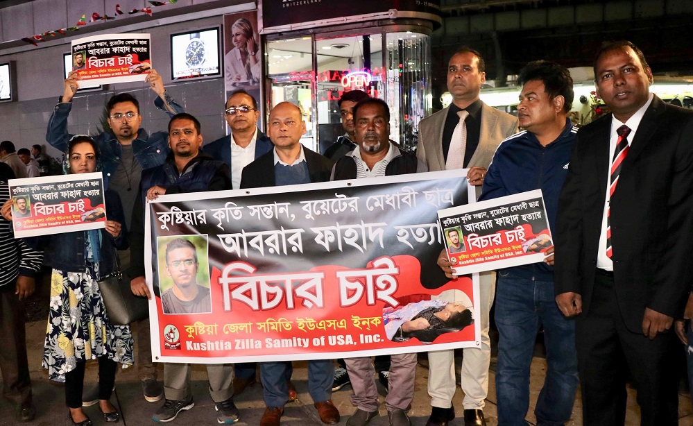 আবরার হত্যায় জড়িতদের দৃষ্টান্তমূলক শাস্তি দাবিতে নিউইয়র্কে মানববন্ধন