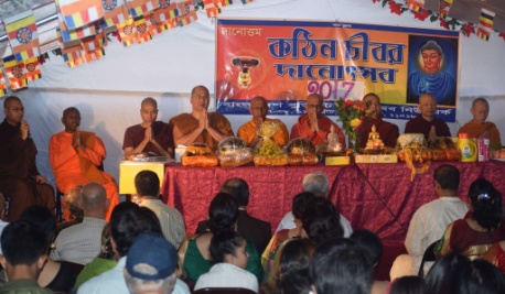 মধ্যাহ্নভোজের পর উত্তম বড়–য়ার সঞ্চালনায় মহান এই ধর্মানুষ্ঠানে মৈত্রী ভাবনা পাঠ করেন সপ্তবর্না বড়–য়া ও সুদিপ্তা বড়–য়া। উদ্ভোধনী বক্তব্য রাখেন বাংলাদেশ বৌদ্ধ বিহার অব নিউইয়র্কের সভাপতি নয়ন বড়–য়া। স্বাগত রাখনে উৎসব উদযাপন পরিষদের আহবায়ক অমল বড়–য়া। নিউইয়র্ক সাধনানন্দ আন্তর্জাতিক বৌদ্ধ বিহারের অধ্যক্ষ ভদন্ত জ্ঞানরতœ মহাথেরো’র সভাপতিত্বে শ্রীলংকান বৌদ্ধ বিহারের ভদন্ত কৌন্ডন্যর্য মহাথেরো সদ্ধর্মদেশনা প্রদান করেন। এতে আরো সদ্ধর্মদেশনা করেন বুদ্ধিস্ট কাউন্সিল অব নিউইয়র্কে সভাপতি বৌদ্ধ ভিক্ষু ড.কেনজিৎসু নাকাগাকি, ভদন্তনন্দা থেরো, বিহার অধ্যক্ষ ভদন্ত মুদিতারতœ সহ পূজনীয় প্রাজ্ঞ ভিক্ষুসংঘ। পঞ্চশীল প্রার্থনা করেন মিলন বড়–য়া। চীবর পরিক্রমা করে কঠিন চীবর উৎসর্গ শেষে বিহারের সাধারণ সম্পাদক রাখাল বড়–য়া সবাইকে ধন্যবাদ জানান।