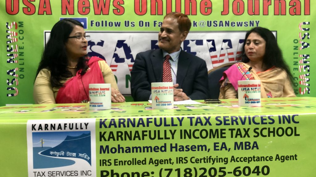 অনুষ্ঠান স্পন্সর কর্ণফুলী ট্যাক্স সার্ভিসেস ইনক, কর্ণফুলী ইনকাম ট্যাক্স স্কুল, মামুন’স টিউটোরিয়াল এবং এশিয়ান মাল্টি সার্ভিস ইনক। অনুষ্ঠান সহযোগি মামুন রহমান। ‘ইউএসএনিউজঅনলাইন জার্নাল’ বিষয়ে যোগাযোগ : ফোন : ১-৬৪৬-২৪৪-৯৯২৯।