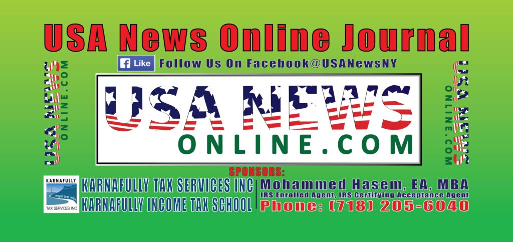 অনুষ্ঠান স্পন্সর কর্ণফুলী ট্যাক্স সার্ভিসেস ইনক, কর্ণফুলী ইনকাম ট্যাক্স স্কুল, মামুন’স টিউটোরিয়াল এবং এশিয়ান মাল্টি সার্ভিস ইনক। প্রোগ্রাম অ্যাসোসিয়েট মামুন রহমান। ‘ইউএসএনিউজঅনলাইন জার্নাল’ বিষয়ে যোগাযোগ : ফোন : ১-৬৪৬-২৪৪-৯৯২৯।