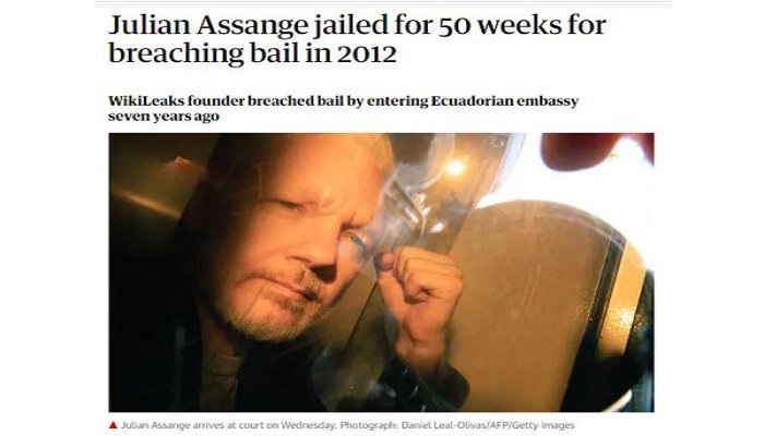 ইউএসএনিউজঅনলাইন.কম ডেস্ক : উইকিলিকসের প্রতিষ্ঠাতা জুলিয়ান অ্যাসাঞ্জকে ৩৫০ দিনের কারাদণ্ড দিয়েছে বিট্রিশ আদালত। আদালতের দেয়া জামিন শর্ত ভঙ্গ এবং প্রায় সাত বছর ধরে পালিয়ে থাকার কারণে তাকে এ কারাদণ্ড দিয়েছে লন্ডনের সাউথওয়ার্ক ক্রাউন কোর্ট। রায় ঘোষণা করেন বিচারক ডেবোরাহ টেইলর। বাংলাদেশ প্রতিদিন।