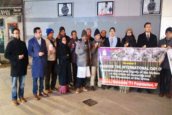 ইউএসএনিউজঅনলাইন.কম ডেস্ক, নিউইয়র্ক: গণহত্যার সাথে জড়িতদের দৃষ্টান্তমূলক শাস্তি এবং একাত্তরের ২৫ মার্চ থেকে ১৫ ডিসেম্বর পর্যন্ত বাংলাদেশে গণহত্যার আন্তর্জাতিক স্বীকৃতি দাবিতে ৯ ডিসেম্বর রবিবার নিউইয়র্কে র‌্যালি করলেন বাংলাদেশিরা। দিনটি ছিল জাতিসংঘ ঘোষিত ‘গণহত্যা প্রতিরোধ এবং ঘাতকদের দৃষ্টান্তমূলক শাস্তি প্রদানের রেজ্যুলেশন গ্রহণের ৭০তম বার্ষিকী’। নিউইয়র্কে জাতিসংঘ সদর দফতরেও এ উপলক্ষে সেমিনার হয়েছে।