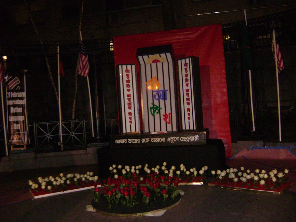 একুশের প্রথম প্রহর শনিবার দুপুর ১টায় জাতিসংঘের সামনে পুষ্পার্ঘ্য অর্পণ
