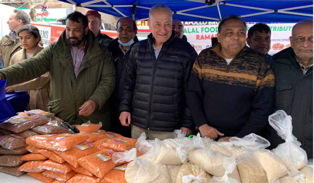 নিউইয়র্কে এস্টোরিয়া ওয়েলফেয়ার সোসাইটির রমজানের খাবার বিতরণ অনুষ্ঠানে সিনেটের ম্যাজরিটি লিডার চাক শুমার