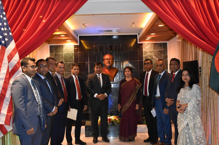 যুক্তরাষ্ট্রে নিযুক্ত বাংলাদেশের রাষ্ট্রদূত মোঃ শহিদুল ইসলাম কর্তৃক দূতাবাসের বঙ্গবন্ধু কর্ণারে অবস্থিত জাতির পিতা বঙ্গবন্ধু শেখ মুজিবুর রহমানের আবক্ষ মূর্তিতে পুষ্পস্তবক অর্পনের মাধ্যমে দিনের কর্মসূচী শুরু হয়। এ সময় দূতাবাসের অন্যান্য কর্মকর্তাবৃন্দ উপস্থিত ছিলেন।