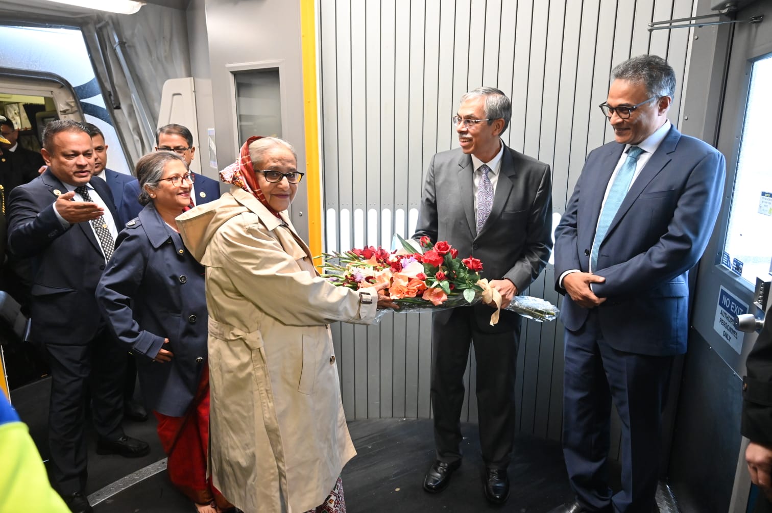 এর আগে একই দিনে প্রধানমন্ত্রী ও তাঁর সফরসঙ্গীদের বহনকারী বিমান বাংলাদেশ এয়ারলাইন্সের একটি বিশেষ চার্টার্ড ভিভিআইপি ফ্লাইট (বিজি১৪০৩) জাপান, যুক্তরাষ্ট্র এবং যুক্তরাজ্যে তাঁর ১৫ দিনের সরকারি সফরের প্রথম ধাপে সকাল ৭টা ৫৬ মিনিটে ঢাকার হযরত শাহজালাল আন্তর্জাতিক বিমানবন্দর থেকে রওনা হয়।