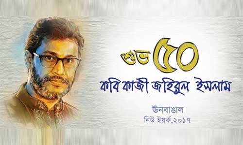 নিউইয়র্ক : বাংলা ভাষার অত্যন্ত গুরুত্বপূর্ণ কবি কাজী জহিরুল ইসলাম ১০ ফেব্রুয়ারী পঞ্চাশে পা দিয়েছেন। এ উপলক্ষে “ঊনবাঙাল” গত ১১ ফেব্রুয়ারী শনিবার কবিকে ঘিরে আয়োজন করে এক বর্ণাঢ্য অনুষ্ঠানমালার। সন্ধ্যা ছয়টায় জ্যামাইকার স্টার পার্টি হলে নিউ ইয়র্কের শিল্পানুরাগী মানুষের ঢল নামে কবিকে ফুলেল শুভেচ্ছা জানাতে। কবির প্রিয় একটি রবীন্দ্র সঙ্গীত “আনন্দলোকে মঙ্গলালোকে” পরিবেশনের মধ্য দিয়ে শুরু হয় অনুষ্ঠান। সঙ্গীত পরিবেশন করেন মুক্তিযোদ্ধা শিল্পী শফি চৌধুরীর নেতৃত্ব সূতপা সাহা এবং শিশু শিল্পী গুঞ্জরী। এরপর “কবির মুখোমুখি” শিরোনামে ত্রিশ মিনিটের একটি সাক্ষাৎকার পর্ব অনুষ্ঠিত হয়। সাংবাদিক শামীম আল আমিন কবি কাজী জহিরুল ইসলামের মুখোমুখি হন এ পর্যায়ে। সাক্ষাৎকার শেষে দর্শকরা কবিকে বিভিন্ন প্রশ্ন করেন। এতে অংশ নেন সাংবাদিক কৌশিক আহমেদ, সাংবাদিক আনওয়ার হোসেইন মঞ্জু, রাজিয়া নাজমী, এজাজ আলম, আরিফ মাহমুদ শৈবাল প্রমূখ। এরপর কবির বেড়ে ওঠা এবং তাঁর জীবনের নানান ঘটনাবলী নিয়ে নির্মিত একটি প্রামান্যচিত্র প্রদর্শিত হয়, পিনড্রপ নীরবতায় হলভর্তি দর্শক তা উপভোগ করেন। প্রামান্য চিত্রটি নির্মাণ করেন শামীম আল আমিন, নেপথ্য কন্ঠে ছিলেন আবৃত্তি শিল্পী নজরুল কবীর। প্রামান্য চিত্রটির মধ্য দিয়ে দর্শকরা আরো একবার নিশ্চিত হন বহু বিচিত্র অভিজ্ঞতার অভিঘাতে সমৃদ্ধ এক কবি কাজী জহিরুল ইসলাম। এরপর শুরু হয় ফুলেল শুভেচ্ছা পর্ব। কবিকে ফুল দিয়ে শুভেচ্ছা জানান অসংখ্য ভক্ত, গুণগ্রাহী শিল্পানুরাগী মানুষ। এ পর্যায়ে সকলের পক্ষ থেকে কবিকে উত্তরীয় পরিয়ে দেন বর্ষীয়ান সঙ্গীতগুরু মুত্তালিব বিশ্বাস । এ সময় মুহুর্মুহু করতালিতে ফেটে পড়ে স্টার পার্টি হল। ছড়াকার মামুন জামিলের কিশোরী কন্যা তিরু কবির একটি প্রতিকৃতি এঁকে কবিকে উপহার দেন এই পর্বে। এরপর শুরু হয় কবির কবিতা থেকে আবৃত্তি এবং শুভেচ্ছা বক্তব্যের পালা। আবৃত্তি করেন উত্তর আমেরিকার জনপ্রিয় আবৃত্তিশিল্পী ক্রিস্টিনা রোজারিও, ক্লারা রোজারিও, নজরুল কবীর, নজরুল ইসলাম, আনওয়ারুল লাভলু, গোপন সাহা, মিজানুর রহমান প্রধান, শুক্লা রায়, পারভীন সুলতানা, শাহরীন মঞ্জুর, রীপা নূর, নাসিমা সুলতানা প্রমূখ। কবিকে নিবেদিত কবিতা পাঠ করেন লালন নূর এবং রওশন হাসান। অনুষ্ঠানের মূল আলোচক ছিলেন কবি সৈয়দ কামরুল এবং সাংবাদিক কৌশিক আহমেদ। অন্যানের মধ্যে শুভেচ্ছা বক্তব্য রাখেন, জাতিসংঘের সহকারী সেক্রেটারী জেনারেল নুরুল আলম, ছড়াকার শাহ আলম দুলাল, রাজিয়া নাজমী, মুক্তিযোদ্ধা ফকির রহমান, সাংবাদিক আহমেদ মূসা, সাবেক সংসদ সদস্য লিয়াকত আলী, সনম টিভির স্বত্বাধিকারী খন্দকার তৌফিক কাদের, নিলুফার রেজা, শিল্পী শফি চৌধুরী হারুন