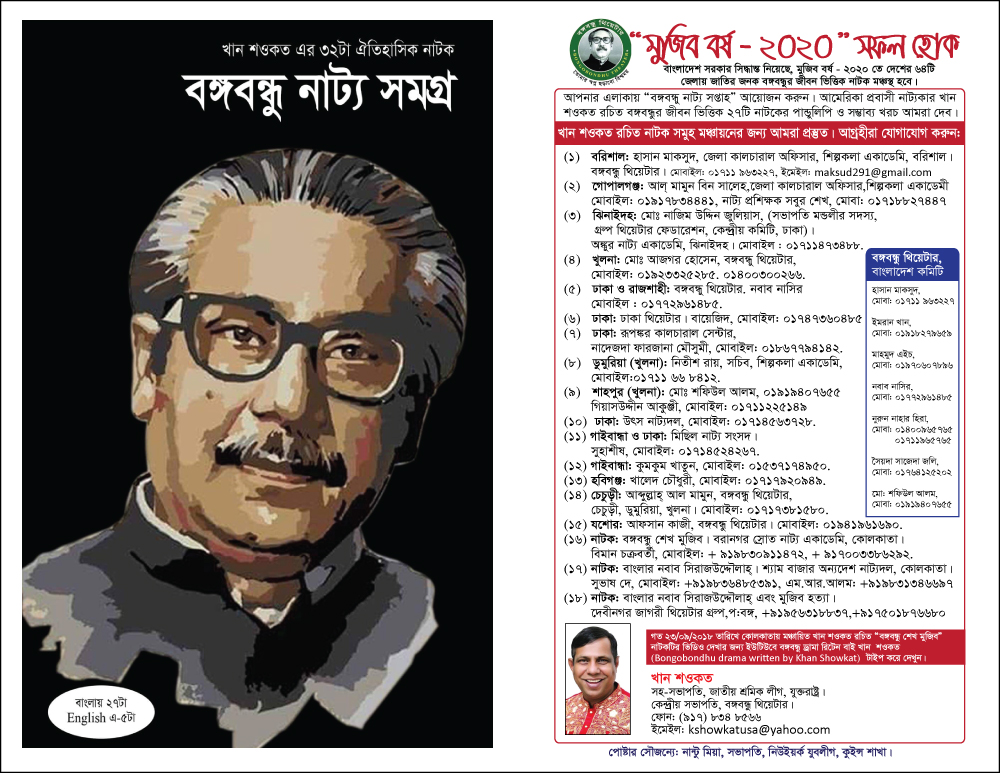 নিউইয়র্ক প্রবাসী নাট্যকার খান শওকতের নতুন গ্রন্থ : বঙ্গবন্ধু নাট্য সমগ্র