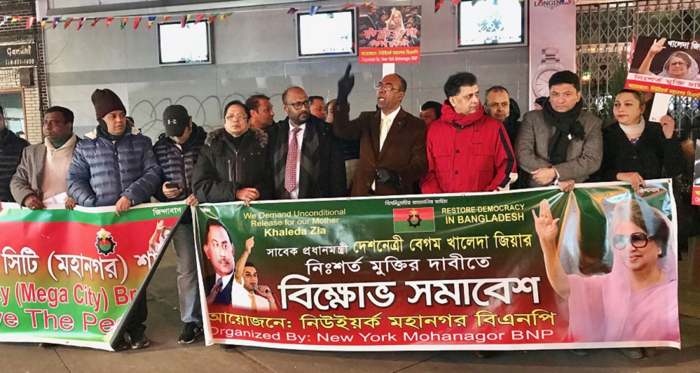 খালেদা জিয়ার মুক্তির দাবিতে নিউইয়র্কে বিএনপির বিক্ষোভ