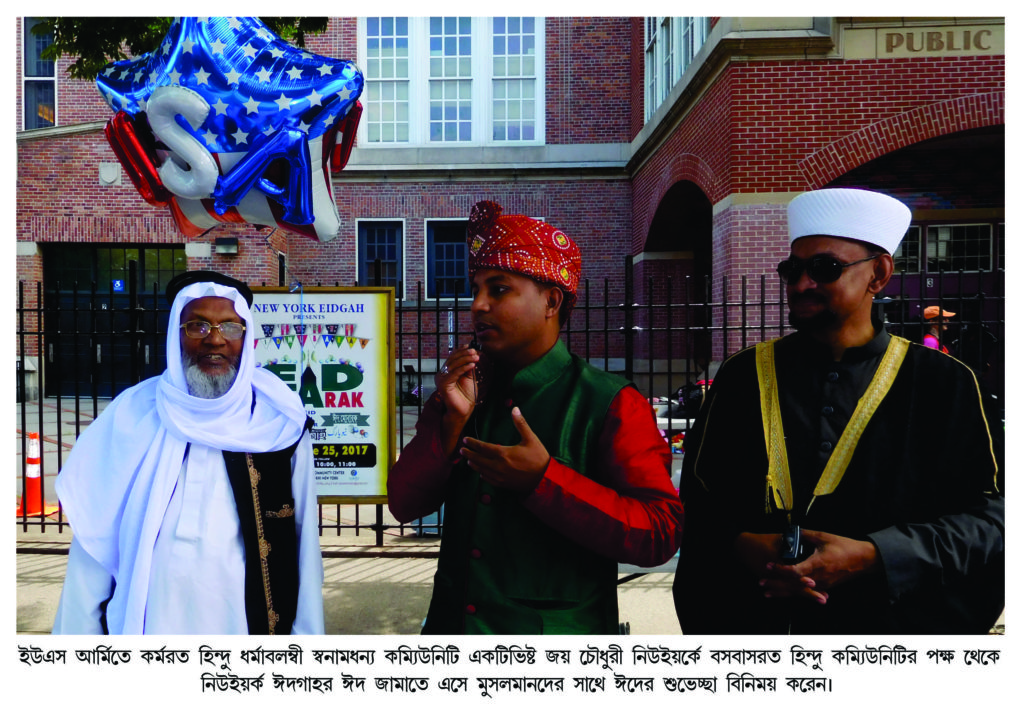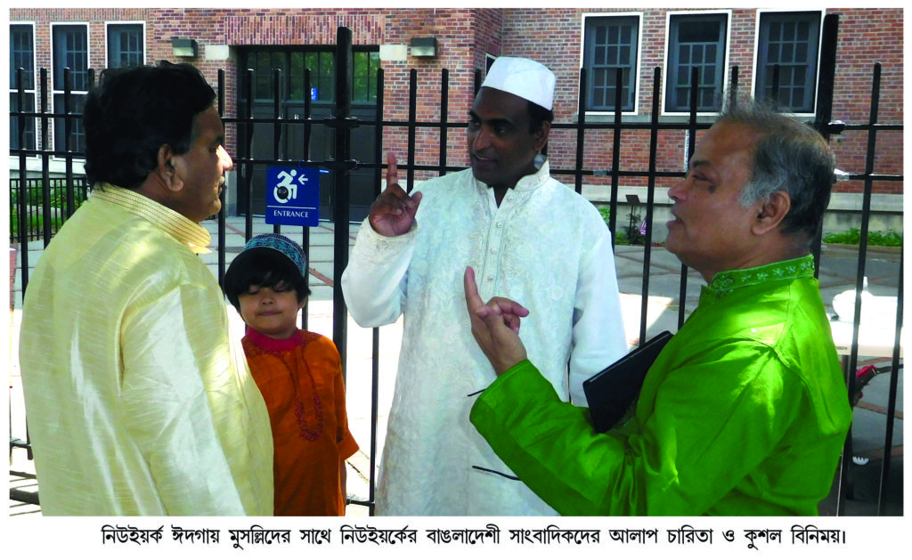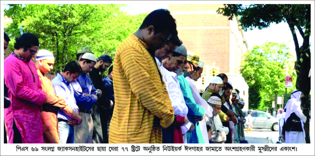 ইউএসএনিউজঅনলাইন.কম ডেস্ক, নিউইয়র্ক : জ্যাকসন হাইটসে নিউইয়র্ক ঈদগাহর নির্দিষ্ট স্থান ডাইভারসিটি প্লাজাকে মসৃণ ও মনোরম করার জন্য তাতে চলমান কন্সট্রাকশানের কারণে নিউইয়র্ক ঈদগাহর যথারীতি ৫টি জামাত সকাল ৭ঃ০০টা, ৮ঃ০০টা, ৯ঃ০০টা, ১০ঃ০০টা ও ১১ঃ০০টায় পিএস ৬৯ সংলগ্ন ছায়াঘেরা ৭৭ ষ্ট্রিটে অত্যন্ত শান্তিপূর্ণ ও আধ্যাত্মিক ভাব গম্ভীর পরিবেশে অনুষ্ঠিত হয়। ডাইভারসিটি প্লাজায় নিউইয়র্ক ঈদগাহর কিছু কিছু মুসল্লি বিভ্রান্তির স্বীকার হলেও নিউইয়র্ক ঈদগাহর ৫টি জামাতে মুসল্লির সংখ্যা ছিল সন্তোষজনক। নিউইয়র্ক