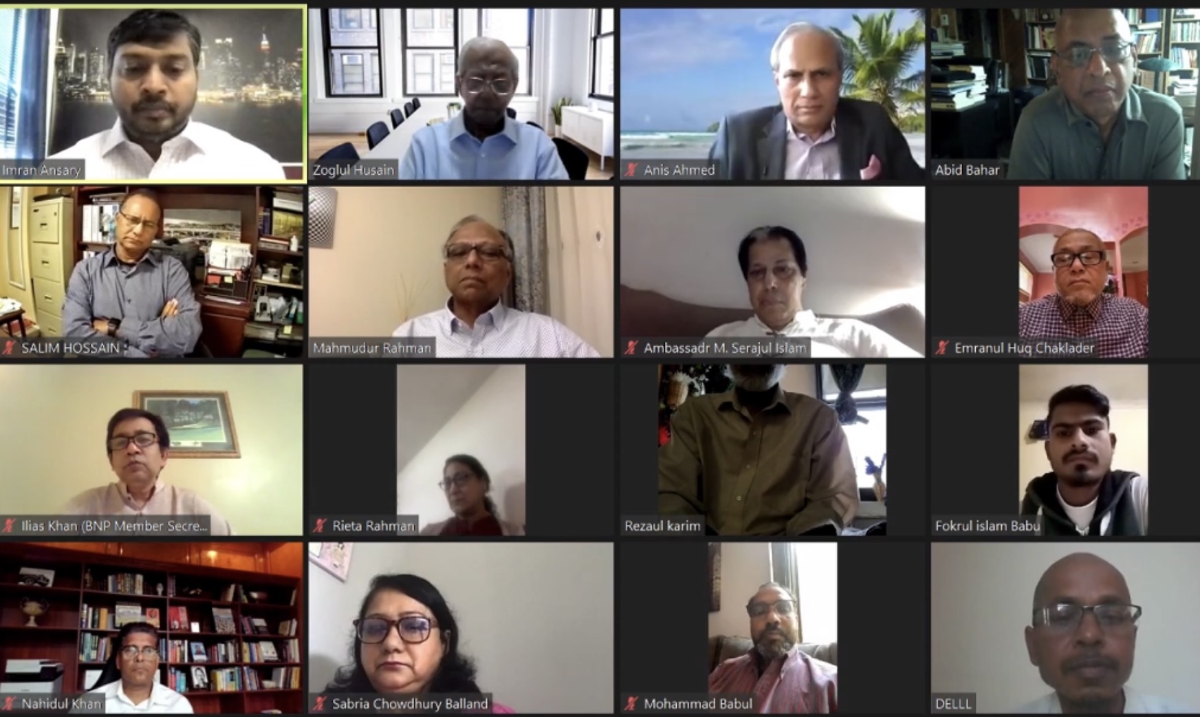 ইউএসএনিউজঅনলাইন.কম ডেস্ক, নিউইয়র্ক: বাংলাদেশের গণতন্ত্র উত্তরণে জাতিসংঘের তত্ত্বাবধানে নির্বাচন অনুষ্ঠান কিংবা গণঅভ্যুন্থানের মাধ্যমে সরকার হটানো এ দু’টি পথই কেবল অবশিষ্ট রয়েছে বলে মনে করেন দৈনিক আমার দেশের সম্পাদক মাহমুদুর রহমান। রোববার কোয়ালিশন ফর হিউম্যান রাইটস এন্ড ডেমোক্রেসি ইন বাংলাদেশ আয়োজিত এক ভার্চুয়াল সেমিনাওে মূল প্রবন্ধ উপস্থাপনকালে এসব কথা বলেন তিনি। বাংলাদেশের গণতন্ত্রেও পথে প্রতিবেশি রাষ্ট্র ভারত বড় বাঁধা বলেও মনে করেন তিনি। সাংবাদিক ও আন্তর্জাতিক নিরাপত্তা বিশ্লেষক ও সিএইচ আরডি বাংলাদেশের সেক্রেটারি ইমরান আনসারীর সঞ্চালনায় সেমিনারে প্যানেল আলোচক হিসেবে বক্তব্য রাখেন সাবেক রাষ্ট্রদূত সিরাজুল ইসলাম, লেখিকা ও রাজনীতিবিদ রীটা রহমান, বাইডেন ক্যাম্পেইন এর বাংলাদেশ বিষয়ক পরিচালক আনিস আহম্মেদ, ও প্রফেসর আবিদ বাহার। মানবাধিকার, গণমাধ্যমের স্বাধীনতা ও ধ্বংসপ্রায় বাংলাদেশের গণতন্ত্র শীর্ষক এ সেমিনারে স্বাগত বক্তব্য রাখেন সিএইচআরডি বাংলাদেশের সভাপতি জগলুল হোসেন ও ভাইস প্রেসিডেণ্ট সাবরিয়া চেšধুরী বালান্দ।