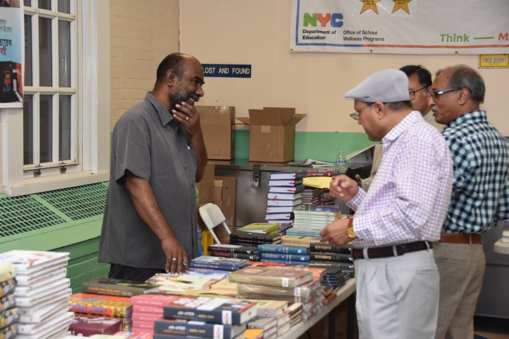 জ্যাকসন হাইটস স্কুল ক্যাফেটেরিয়ায় বাঙালি খাবার ও পণ্যের স্টল সহ বাংলাদেশ ও পশ্চিমবঙ্গের ২০টির বেশি প্রকাশনা সংস্থা বইমেলায় অংশ নিচ্ছে।