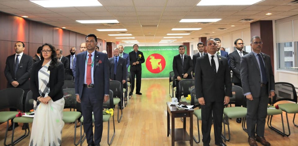 জাতিসংঘ সদর দপ্তরে আন্তর্জাতিক মাতৃভাষা দিবস উদ্যাপন অনুষ্ঠানের আগে সকালে যথাযোগ্য মর্যাদায় জাতিসংঘে বাংলাদেশ স্থায়ী মিশনে মহান শহীদ দিবস ও আন্তর্জাতিক মাতৃভাষা দিবস উদ্যাপনের আয়োজন করা হয়। মান্যবর রাষ্ট্রদূত ও স্থায়ী প্রতিনিধির নেতৃত্বে মিশনের কর্মকর্তা-কর্মচারীগণ মিশনে স্থাপিত অস্থায়ী শহীদ মিনারে পুস্পস্তবক অর্পণ করেন। অনুষ্ঠানটিতে রাষ্ট্রপতি, প্রধানমন্ত্রী, পররাষ্ট্রমন্ত্রী ও পররাষ্ট্র প্রতিমন্ত্রীর বাণী পাঠ করা হয়। সবশেষে জাতির পিতা বঙ্গবন্ধু শেখ মুজিবুর রহমান ও তাঁর পরিবারের শহীদ সদস্যবৃন্দ এবং মহান একুশের ভাষা শহীদদের আত্মার মাগফেরাত কামনা করে বিশেষ মোনাজাত পরিচালনা করা হয়।