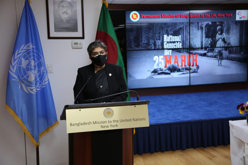 জাতিসংঘে বাংলাদেশ স্থায়ী মিশনে ‘গণহত্যা দিবস’ পালন: একাত্তরের গণহত্যার আন্তর্জাতিক স্বীকৃতি আদায়ে সর্বাত্মক প্রচেষ্টা অব্যাহত রাখার অঙ্গীকার রাষ্ট্রদূত ফাতিমার