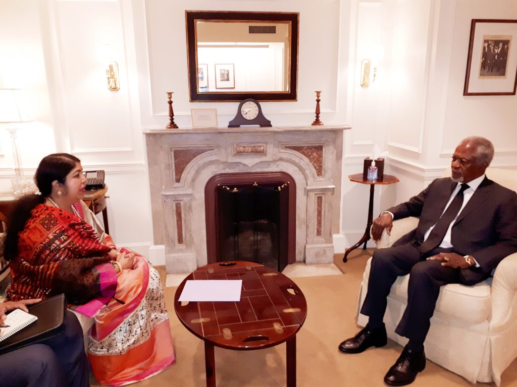 জাতিসংঘে রোহিঙ্গা শরণার্থী বিষয়ক ব্রিফিং এ রোহিঙ্গা সমস্যা সমাধানে আন্তর্জাতিক সম্প্রদায়কে স্থায়ী ও কার্যকর ভূমিকা রাখার আহবান বাংলাদেশ জাতীয় সংসদের স্পীকারের : সাবেক মহাসচিব কফি আনানের সাথে বৈঠক