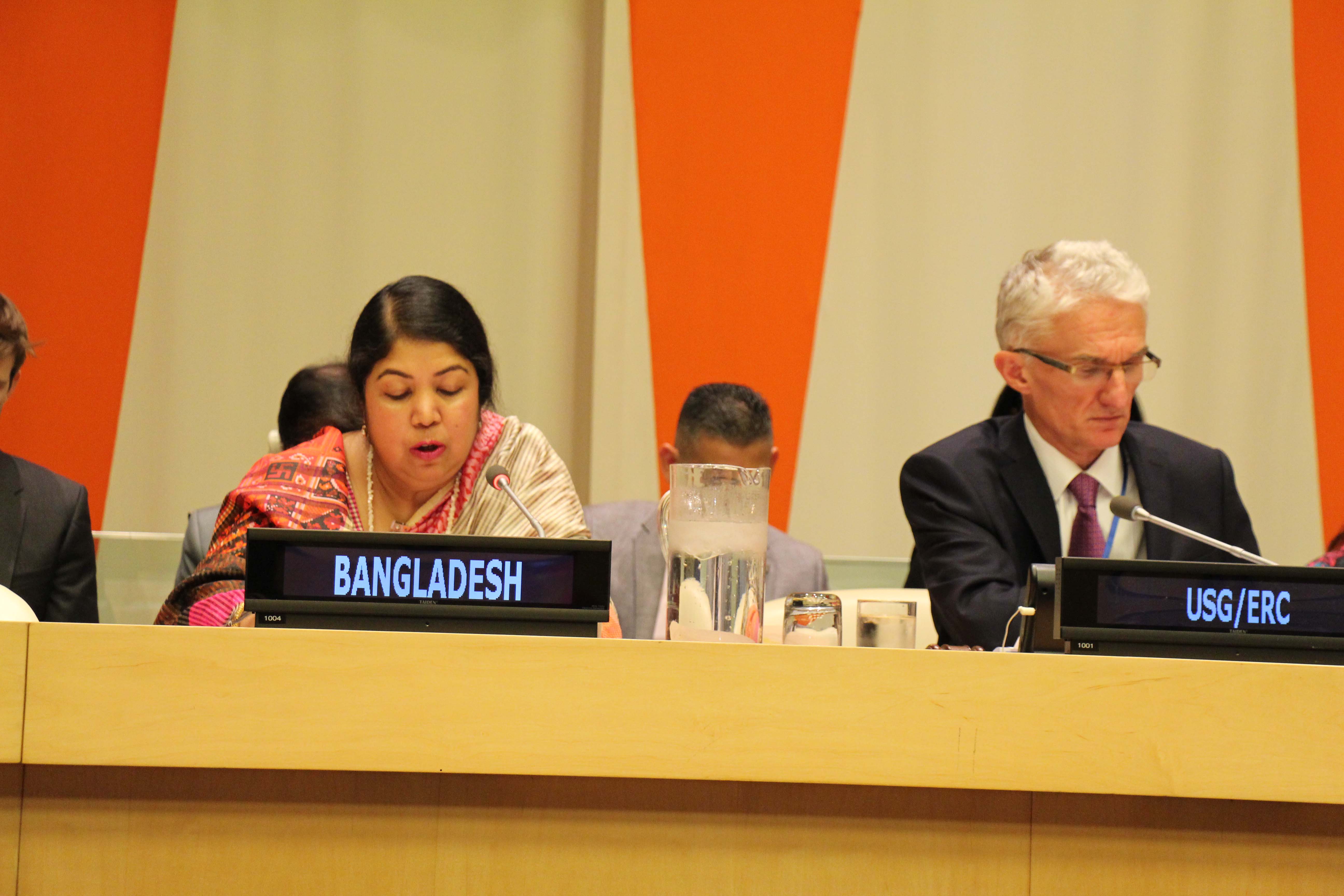 তিনি এক্ষেত্রে জাতিসংঘের মানবিক সহায়তা পরিকল্পনার কথা, রোহিঙ্গাদের জন্য জাতিসংঘ প্রদত্ত মানবিক সহায়তা, এ পর্যন্ত আন্তর্জাতিক সম্প্রদায় হতে প্রাপ্ত সহায়তার কথা সদস্যরাষ্ট্রসমূহকে অবহিত করেন এবং তিনি এ প্রসঙ্গে ২৩ অক্টোবর জেনেভাতে অনুষ্ঠিতব্য প্লেজিং কনফারেন্স (Pledging Conference) এর কথা উল্লেখ করে পরিকল্পনা বাস্তবায়নে বাদবাকী সহায়তার জন্য আন্তর্জাতিক সম্প্রদায়ের নিকট আহ্বান জানান।