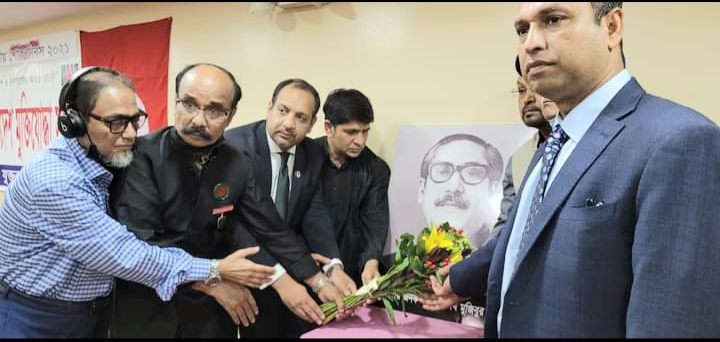 সভা মঞ্চে উপবিষ্ট ছিলেন নিউইয়র্কে বাংলাদেশের ডিপুটি কনসাল জেনারেল নাজমুল হাসান, জাতিসংঘে বাংলাদেশ মিশনের প্রেস সেক্রেটারী নুরে এলাহী মিনা, ডেমোক্রেটিক পার্টির ডিসট্রিকট লিডার এট লার্জ এর্টনী মঈন চৌধুরী, বাংলাদেশ সোসাইটির কোষাধ্যক্ষ ও কমিউনিটি বোর্ড মেম্বার মোহাম্মদ আলী, নিউইয়র্ক স্টেট আওয়ামী লীগের সহ-সভাপতি মহিউদ্দীন আহম্মদ ও সংগঠনের ডিপুটি কমান্ডার বীর মুক্তিযুদ্ধা মীর আবদুল কাদির। অনুষ্ঠানের শুরুতে জাতির জনকের প্রতিকৃতিতে পুস্পার্ঘ অর্পণ করা হয়। পরে উপস্থিত সকল মুক্তিযুদ্ধা একে একে বঙ্গবন্ধুর প্রতিকৃতিতে পুস্পার্ঘ অর্পণ করেন।