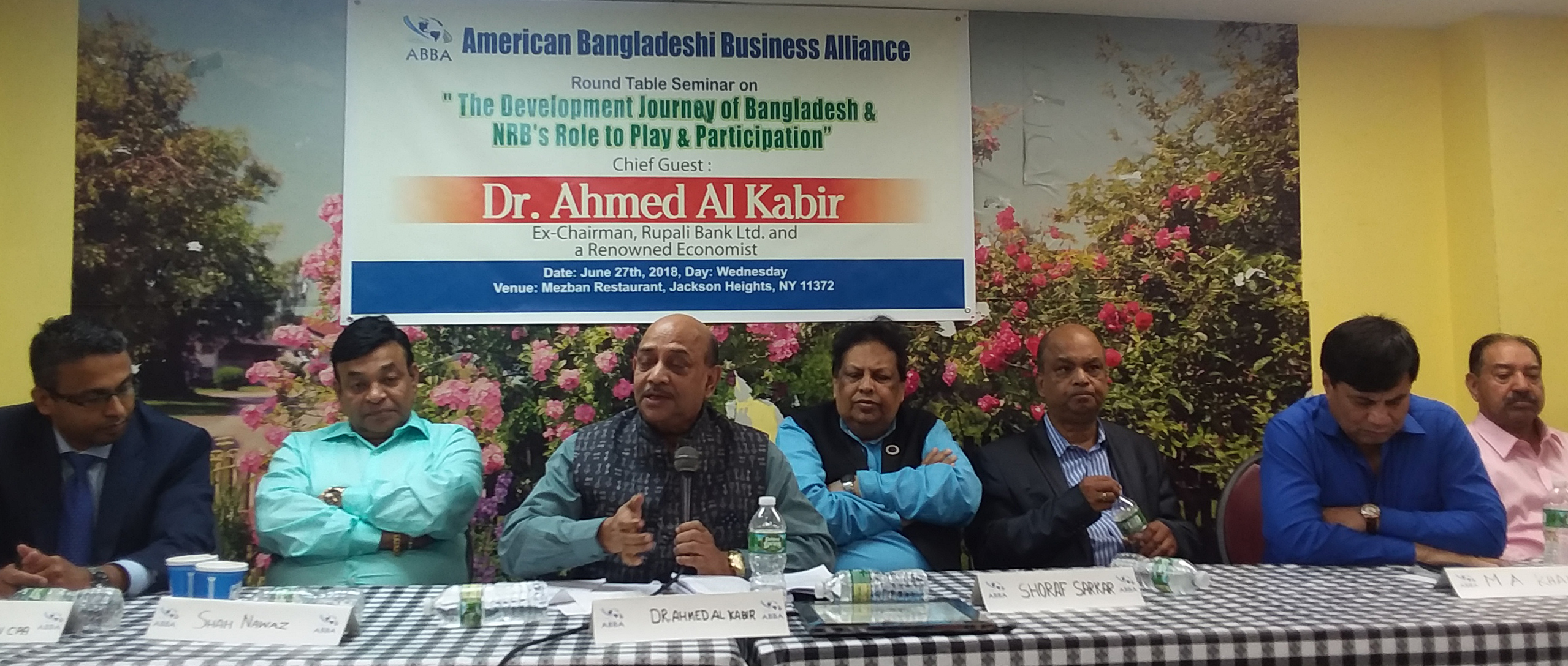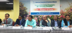 নিউইয়র্ক সিটির জ্যাকসন হাইটসের একটি রেষ্টুরেন্টে গত ২৭ জুন বুধবার সন্ধ্যায় আয়োজিত সেমিনারে প্রধান অতিথির বক্তব্যে ড. আহমেদ আল কবীর উপরোক্ত কথা বলেন। সেমিনারে সভাপতিত্ব করেন এবিবিএ’র ভারপ্রাপ্ত সভাপতি মুক্তিযোদ্ধা শরাফ সরকার। জেবিবিএ’র সাবেক সাধারণ সম্পাদক তারেক হাসান খান সঞ্চালনায় সেমিনারে প্যানেল আলোচক ছিলেন বিশিষ্ট শিল্পপতি জহিরুল ইসলাম, প্যাসিফিক গ্রুপের চেয়ারম্যান এম এ খালেক, বিশিষ্ট ব্যবসায়ী নাসির আলী খান পল ও শাহ নেওয়াজ, বিশিষ্ট শিক্ষাবীদ কর্নেল (অব:) নাজমুল ইসলাম, ফার্মাস্টি আওয়াল সিদ্দিকী, বিশিষ্ট কলামিস্ট মুক্তিযোদ্ধা আবু জাফর মাহমুদ, ইয়াকুব এ খান সিপিএ এবং বাংলাদেশ সোসাইটি ইনক’র সাবেক সাধারণ সম্পাদক অধ্যাপিকা রানা ফেরদৌস চৌধুরী। খবর ইউএনএ’র।