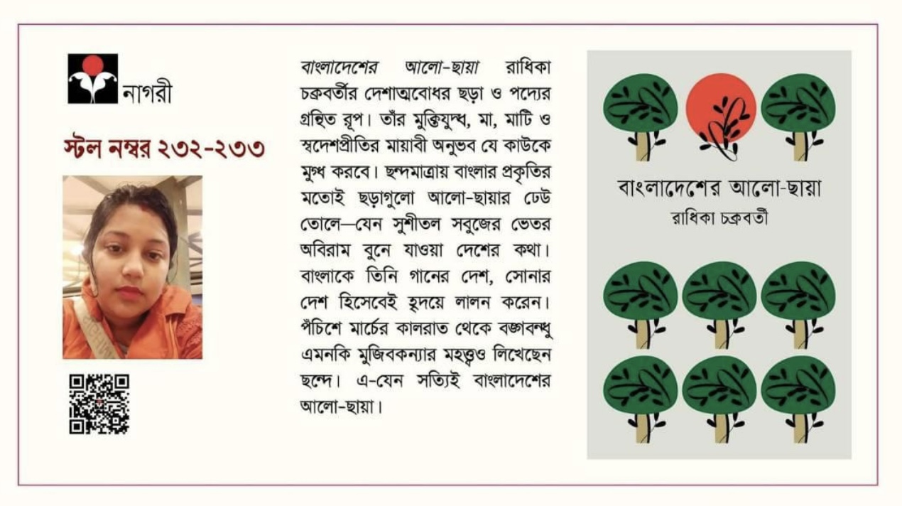 ঢাকার অমর একুশে বই মেলায় লেখিকা রাধিকা চক্রবর্তীর বাংলাদেশের আলো-ছায়া