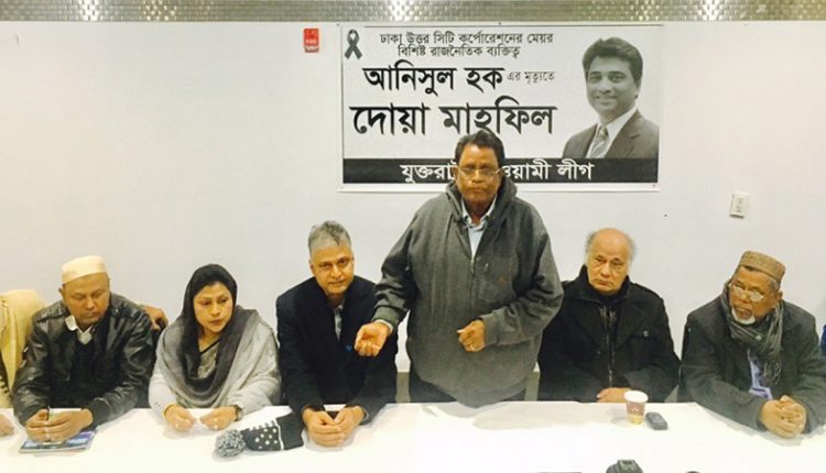 ঢাকা উত্তর সিটি করপোরেশনের মেয়র আনিসুল হকের জন্য যুক্তরাষ্ট্র আওয়ামী লীগের দোয়া মাহফিল