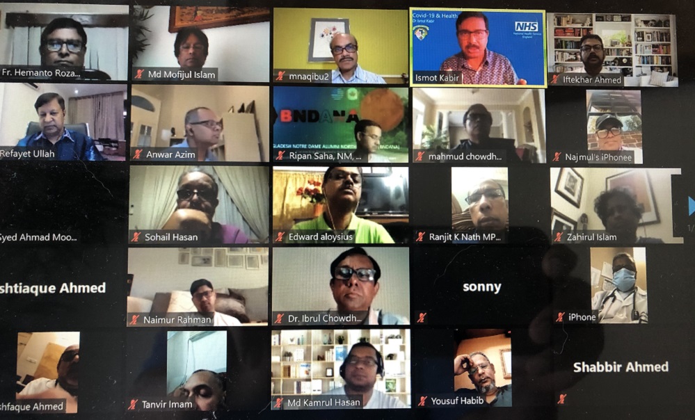 ডাঃ ইসমত কবির প্রথমেই অ্যালামনাই নর্থ আমেরিকা সভাপতি সহ আয়জক সবাইকে আন্তরিক ধন্যবাদ জানান। তিনি বর্তমান বিশ্বে আজকের এই ভাইরাসটির বিদ্যমান স্বাস্থ্য বৈষম্য, সবচেয়ে বেশি বয়স্কদের, ডাক্তার, নার্স, নিরাপত্তায় দায়িত্ব, বেক্ত্যি, সহ ডাইবেটিক, এ্যজমা, কিডনি এবং কেন্সার আক্রান্ত রোগীদের ভয়াবয়তা এবং এর থেকে নিজেদের রক্ষায় করনিয় কিছু দিক নির্দেশনা দেন। তিনি বাংলাদেশের বেলায় উচ্চ বিত্ত, মধ্যবিত্ত, চেয়ে নিম্মবিত্তের কম আক্রান্তের কারন হিসাবে তাদের কায়িক পরিশ্রমের কথা উল্ল্যেখ করেন। পরে সাংবাদিকদের কিছু প্রশ্নর উত্তর দেন ডাঃ ইসমত কবির।