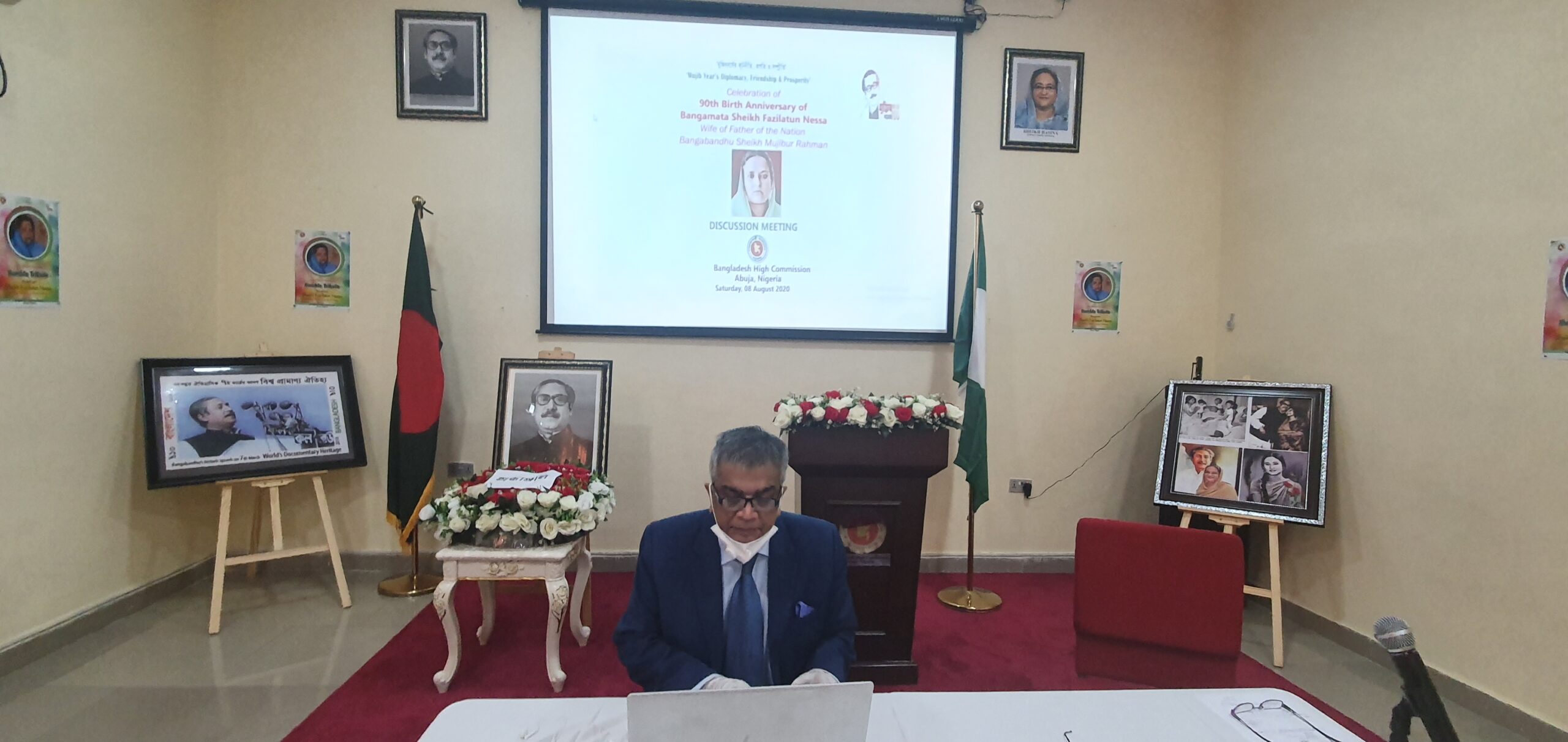 শেখ ফজিলাতুন নেছার উপরে গভীর শ্রদ্ধা জ্ঞাপন করে নাইজেরিয়ায় বাংলাদেশের হাইকমিশনার জনাব মোঃ শামীম আহসান বলেন যে বঙ্গমাতার আদর্শ আগামী দিনগুলোতে বাঙ্গালি মহিলাদের কাছে জ¦লন্ত আদর্শ হিসেবে বিবেচিত হবে। জনাব আহসান বলেন যে – বঙ্গমাতা শেখ ফজিলাতুন নেছা জাতির পিতা বঙ্গবন্ধু শেখ মুজিবুর রহমান এর সাথে চিরদিন ছায়ার মতো থেকেছেন এবং বঙ্গবন্ধুকে বিভিন্ন রাজনৈতিক সংকটময় ও কঠিন মুহূর্তে সঠিক সিদ্ধান্ত গ্রহণে নীরবে সহায়তা করে গিয়েছেন। হাইকমিশনার আরো বলেন যে, বঙ্গমাতা শুধু জাতির পিতার সহধর্মিনী ছিলেন না, একই সাথে ছিলেন বাঙ্গালির মুক্তি সংগ্রামের অন্যতম অগ্রপথিক। মিশনের তৃতীয় সচিব জনাব মোহাম্মদ শাহ ইকরামুল হক এর সঞ্চালনায় আলোচনা পর্বে জনাব মোহাম্মদ শাহ ইকরামুল হক এবং কম্যুনিটি নেতা জনাব মো: আকবর হোসেনও বক্তব্য রাখেন।