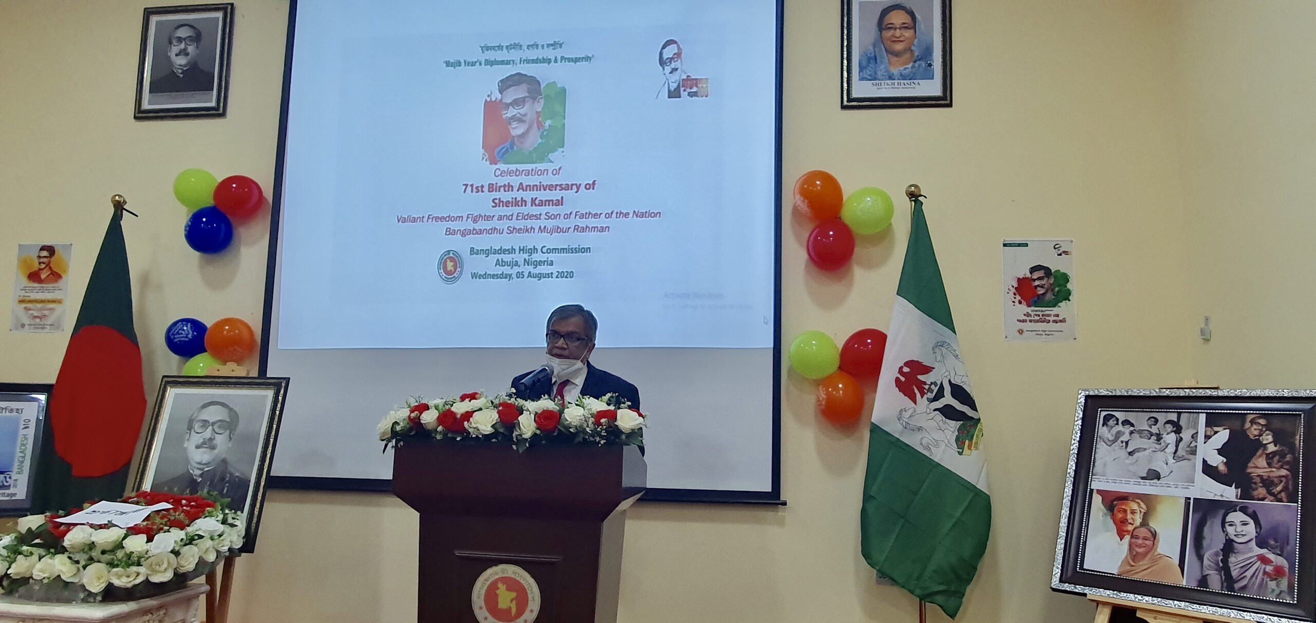 ইউএসএনিউজঅনলাইন.কম ডেস্ক : নাইজেরিয়ায় বাংলাদেশ হাইকমিশনে জাতির পিতা বঙ্গবন্ধু শেখ মুজিবুর রহমান এর জ্যেষ্ঠ পুত্র শেখ কামাল এর ৭১তম জন্ম বার্ষিকী ৫ আগষ্ট ২০২০ পালন করা হয় যথাযোগ্য মর্যাদায়। অনুষ্ঠানসূচীর মধ্যে ছিল পবিত্র কোরআন তেলাওয়াত, শহীদ শেখ কামালের জীবনীর উপর প্রামাণ্য চিত্র প্রদর্শনী, আলোচনা সভা, জন্মদিনের কেক-কাটা এবং বিশেষ মোনাজাত।