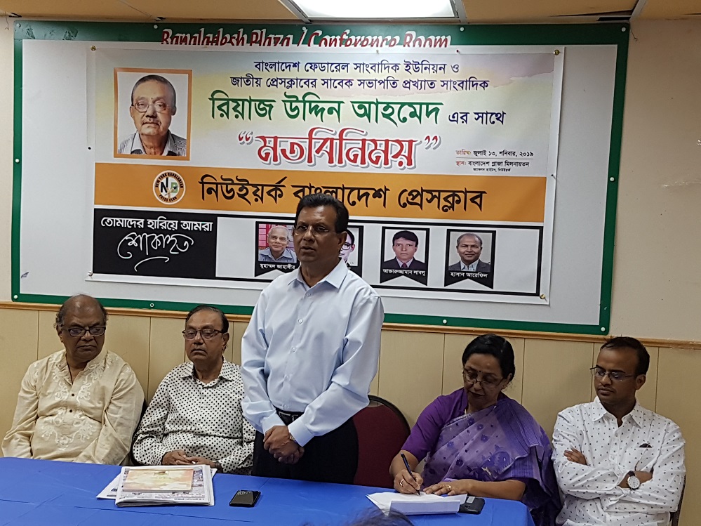 নানা বাধা-বিপত্তির মধ্যদিয়েই সাংবাদিকদের দায়িত্ব পালন করতে হবে : নিউইয়র্ক বাংলাদেশ প্রেসক্লাবের সভায় রিয়াজউদ্দিন আহমেদ