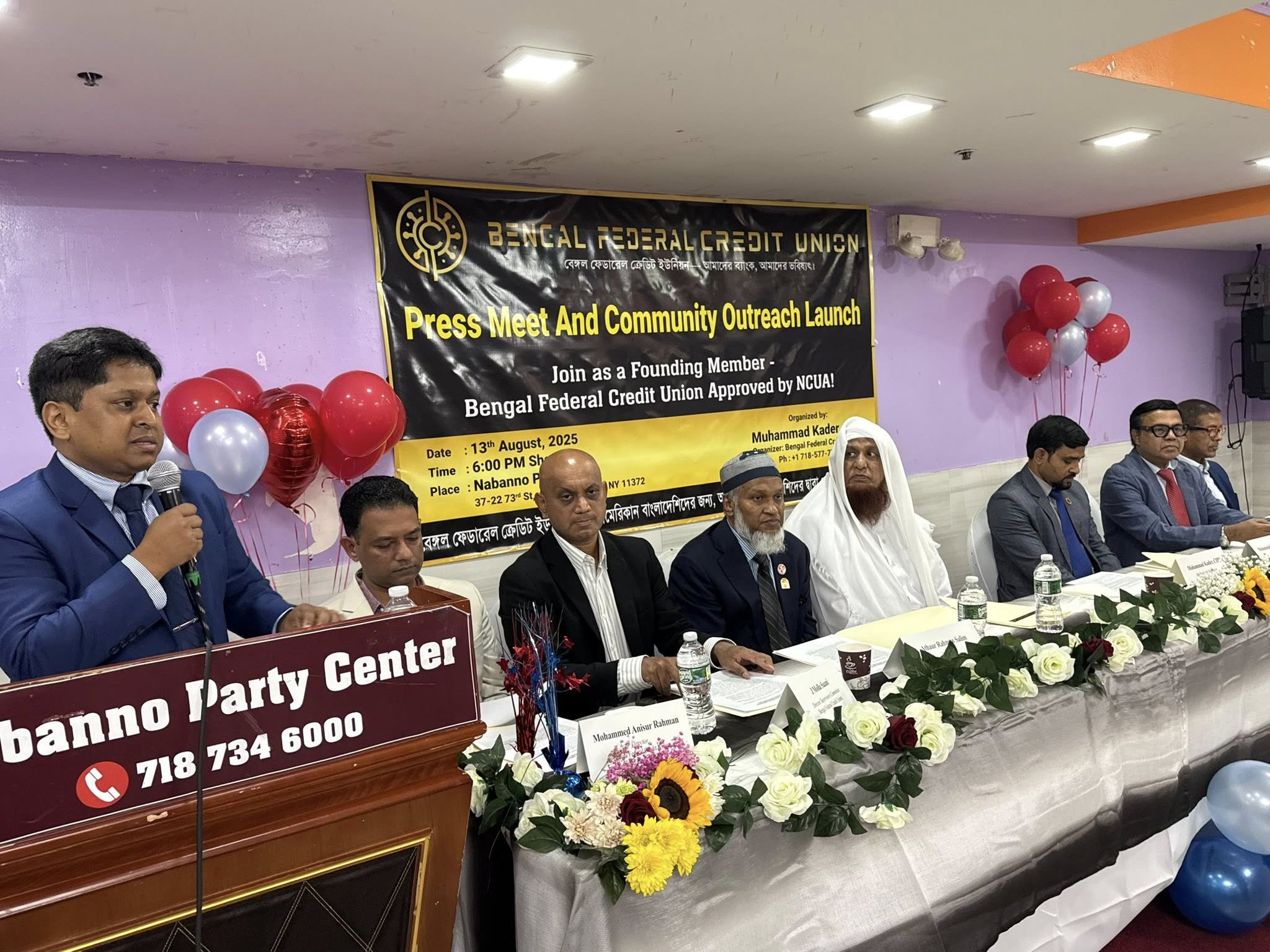 ইউএসএনিউজঅনলাইন.কম : নিউইয়র্ক সিটির জ্যাকসন হাইটসে নবান্ন পার্টি হলে ১৩ আগস্ট অনুষ্ঠিত হলো ‘বেঙ্গল ফেডারেল ক্রেডিট ইউনিয়ন’-এর নাম ঘোষণা এবং কমিউনিটি আউটরিচ প্রোগ্রাম। অনুষ্ঠানে‘বেঙ্গল ফেডারেল ক্রেডিট ইউনিয়ন’-এর প্রতিষ্ঠাতা মুহাম্মদ কাদের, সিআইপি বলেন, বাংলাদেশি-আমেরিকান কমিউনিটির ইতিহাসে এক নতুন অধ্যায়ের সূচনা করল, যেখানে প্রথমবারের মতো যুক্তরাষ্ট্রে বসবাসরত প্রবাসী বাংলাদেশিদের উদ্যোগে গঠিত হতে যাচ্ছে পূর্ণাঙ্গ ফেডারেল স্বীকৃত একটি আর্থিক প্রতিষ্ঠান।