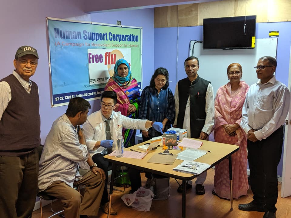 বাংলাদেশিদের দ্বারা পরিচালিত নিউইয়র্কভিত্তিক মানবাধিকার সংস্থা হিউম্যান সাপোর্ট করপোরেশন গত সাত বছর ধরে বিনামূল্যে ফ্লু-শট কার্যক্রম পরিচালনা করে আসছে। জ্যামাইকায় কর্মসূচির উদ্বোধন করেন সাপ্তাহিক ঠিকানার প্রধান সম্পাদক মুহম্মদ ফজলুর রহমান। ঢাকার নটরডেম কলেজের অবসর প্রাপ্ত অধ্যাপিকা হোসেনে আরা বেগমকে প্রথম টিকাদানের মাধ্যমে কর্মসূচির শুভ উদ্বোধন ও মুক্তিযুদ্ধা সরাফ সরকারকে টিকাদানের মাধ্যমে কর্মসূচি সমাপ্ত করেন হিউম্যান সাপোর্ট কর্পোরেশনের সভাপতি, মূলধারার রাজনৈতিক সংগঠক, যুক্তরাষ্ট্র আওয়ামী লীগের প্রবাসী কল্যাণ সম্পাদক মোঃ সোলায়মান আলী।