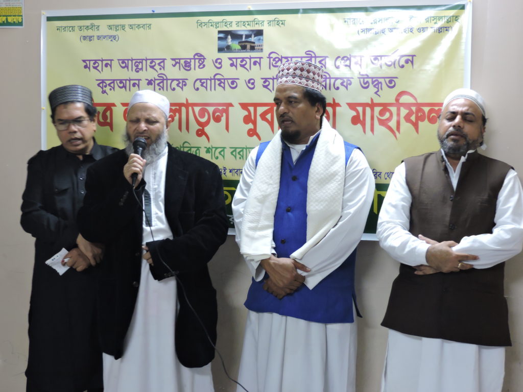 আলেমগণ বলেন, শবে বরাতকে পবিত্র কুরআনের সুরা দুখানের শুরুতে “লাইলাতুল মুবারাকা” ও হাদীস শরীফে “লাইলাতুম মিন নিসফি শাবান” হিসেবে উল্লেখ করা হয়েছে। আরবের পূর্ব দিকে এই রজনীকে মুসলমানরা ফার্সী শব্দে শবে বরাত হিসেবে বলে থাকে। আর তাই¬ যারা বলে যে, শবে বরাত কুরআন ও হাদীস শরীফে নেই তারা মুর্খ ও বাতেল। কেননা তাদের উচিত কুরআন শরীফে “লাইলাতুল মুবারাকা” ও হাদীস শরীফে “লাইলাতুম মিন নিসফি শাবান” অনুসন্ধান করা। উল্লেখ্য যে, যদি কোন মুর্খ দাবী করে যে, কুরআন ও হাদীসে নামাজ রোজা নেই, সেও শাব্দিকভাবে সঠিক। কেননা নামাজ রোজা হল ফার্সী শব্দ যা কুরআন ও হাদীস শরীফে থাকার প্রশ্নই আসে না। কুরআন ও হাদীস শরীফে নামাজ রোজা “সালাহ” ও “সাওম” হিসেবে উল্লেখ রয়েছে। অতএব আলেমগণ বলেন যে, যারা সরলপ্রাণ মুসলমানদের ঈমান হরণ ও সুন্নত নফল ইবাদতের দিবস ও রজনী থেকে কৌশলে দুরে সরাতে চায় তাদের অপপ্রয়াস সম্পর্কে আমাদের সবাইকে সজাগ থাকতে হবে। মাহফিলে আসন্ন পবিত্র রামাদানের তাৎপর্য ব্যাখ্যা করে বলা হয় যে, আমরা আল্লাহ্র নিকট থেকে মহান প্রিয়নবীর খাতিরেই রমাদান, লাইলাতুল কদর ও পবিত্র কুরআন পেয়েছি। সুতরাং নবীপ্রেমেই প্রকৃত ঈমানী ও দ্বীনি তালিম তবলীগ ও দাওয়া। নবীপ্রেমহীন সকল ধর্মীয় প্রচেষ্টাই ঈমানহীন বাতেল ফেরকার অন্ধ অনুসরন। মাহফিলে আলেমগণ সবাইকে নবীপ্রেমে ইসলামের প্রকৃত ধারা আহলে সুন্নতের অনুসরণে জীবন অতিবাহিত করার আহবান জানান। শেষে মুসলিম মিল্লাত ও বিশ্বমানবতার দো’জাহানের প্রকৃত মুক্তি কামনা করে সালাতু সালাম কিয়াম ও দরূদ পাঠান্তে বিশেষ মুনাজাত ও তবারক বিতরণের মাধ্যমে “পবিত্র লাইলাতুল মুবারাকা মাহফিল” সমাপ্ত হয়।