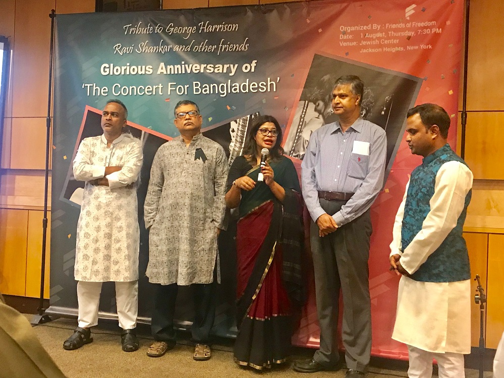 শুরুতে সকলে দাঁড়িয়ে এক মিনিট নিরবতা পালন করেন ‘শোকের মাস আগষ্ট’ উপলক্ষে জাতিরজনক ও তাঁর পরিবারের শহীদ সদস্যগণের আত্মার প্রতি শ্রদ্ধা জানাতে। উল্লেখ্য যে, কয়েক বছর আগে একাত্তরের সেই কনসার্টের স্মরণে নিউইয়র্ক সিটির সেন্ট্রাল পার্কে বহুজাতিক এক সমাবেশ হলেও প্রবাসী বাংলাদেশীদের উদ্যোগে এটিই প্রথম ঘটনা ‘দ্য কনসার্ট ফর বাংলাদেশ’ স্মরণে। এই পথ বেয়ে স্বাধীনতার সুবর্ণ জয়ন্তি তথা ২০২১ সালে মেডিসন স্কোয়ার গার্ডেনে একটি কনসার্টের যে প্রসঙ্গ ক’টনীতিকরা অবতারণা করেছেন, তার জন্যে কমপক্ষে ৫ লাখ ডলার প্রয়োজন। কে দেবে এ অর্থ-এটি প্রশ্ন হিসেবে এসেছে প্রবাসীদের কাছে।
