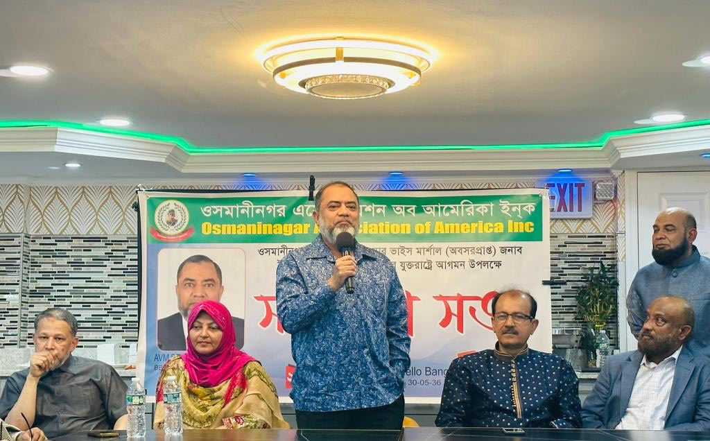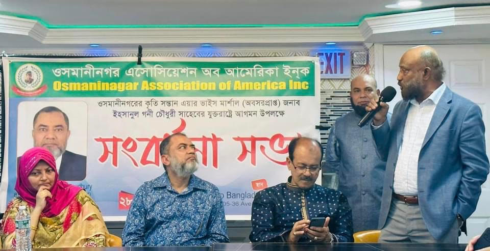 নিউইয়র্কে এয়ার ভাইস মার্শাল ইহসানুল গনী চৌধুরীকে যুক্তরাষ্ট্র ওসমানীনগর উপজেলাবাসীর সংবর্ধনা