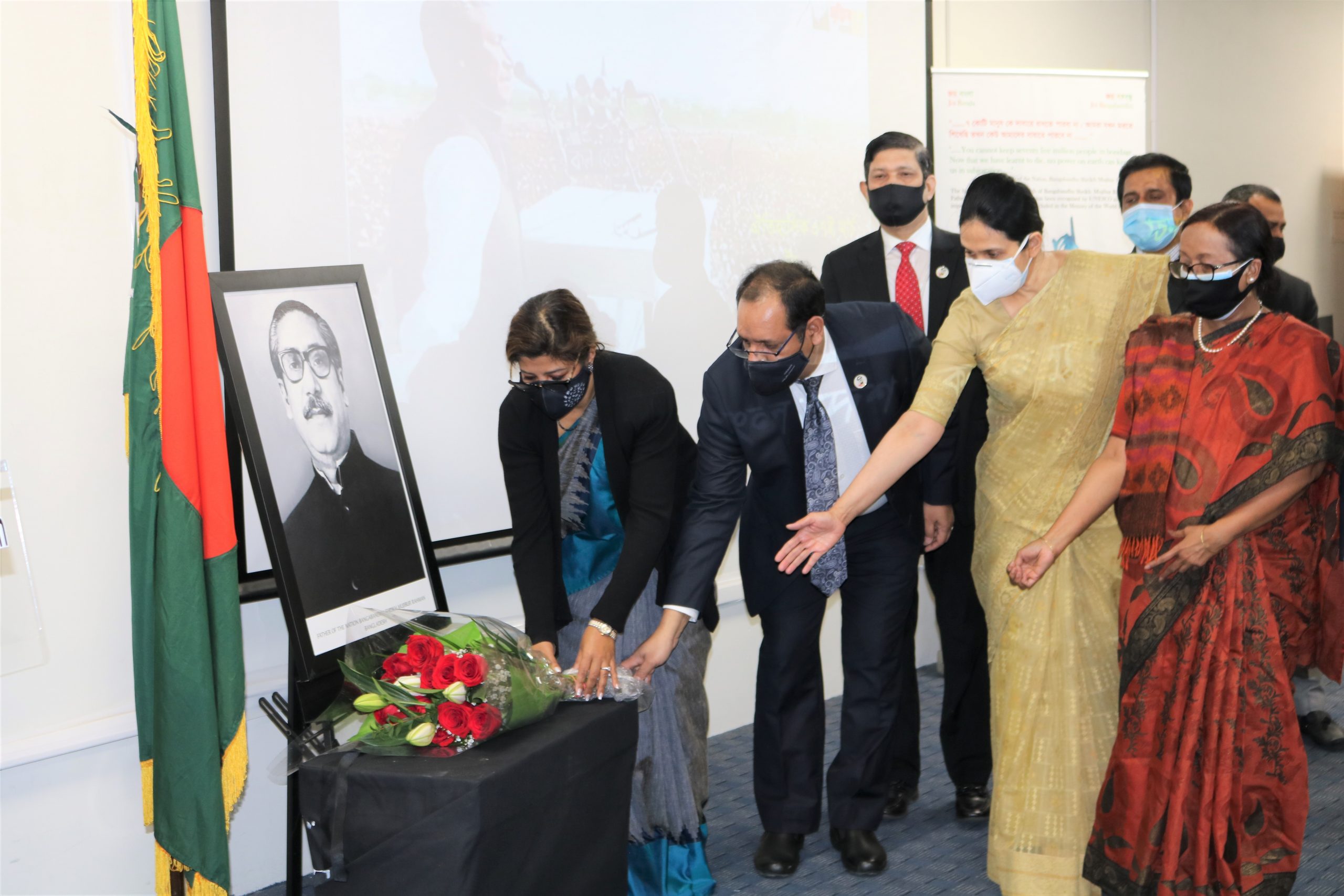 অনুষ্ঠানের শুরুতে কনসাল জেনারেল সাদিয়া ফয়জুননেসা কনস্যুলেটের সকল কর্মকর্তা ও কর্মচারীদের নিয়ে জাতীয় পতাকার প্রতি সম্মান জানিয়ে জাতীয় সংগীত পরিবেশন করেন। এ উপলক্ষ্যে কনস্যুলেটে আয়োজিত কর্মসূচির মধ্যে জাতির পিতা বঙ্গবন্ধু শেখ মুজিবুর রহমানসহ সকল শহীদ বীর মুক্তিযোদ্ধাদের স্মৃতির প্রতি শ্রদ্ধা জানিয়ে এক মিনিট নীরবতা পালন করা হয়। জাতির পিতার প্রতিকৃতিতে পুস্পস্তবক অর্পণ করেন কনসাল জেনারেল সাদিয়া ফয়জুননেসাসহ কনস্যুলেটের অন্যান্য সদস্যবৃন্দ। এ উপলক্ষ্যে ঢাকা হতে প্রেরিত রাষ্ট্রপতি ও প্রধানমন্ত্রী’র বাণী পাঠ করা হয় এবং দিবসটির তাৎপর্য ও ঐতিহাসিক ৭ই মার্চের ভাষণের গুরুত্বের উপর আলোচনা করা হয়। আলোচনা শেষে বঙ্গবন্ধু প্রদত্ত ঐতিহাসিক ৭ই মার্চের ভাষণের ভিডিও প্রদর্শন করা হয়। এছাড়াও জাতির পিতা, তাঁর পরিবারের অন্যান্য শহীদ সদস্য ও শহীদ বীর মুক্তিযোদ্ধাদের আত্মার মাগফেরাত কামনা করে এবং দেশের অব্যাহত সমৃদ্ধির জন্য বিশেষ দোয়া ও মোনাজাত করা হয়।