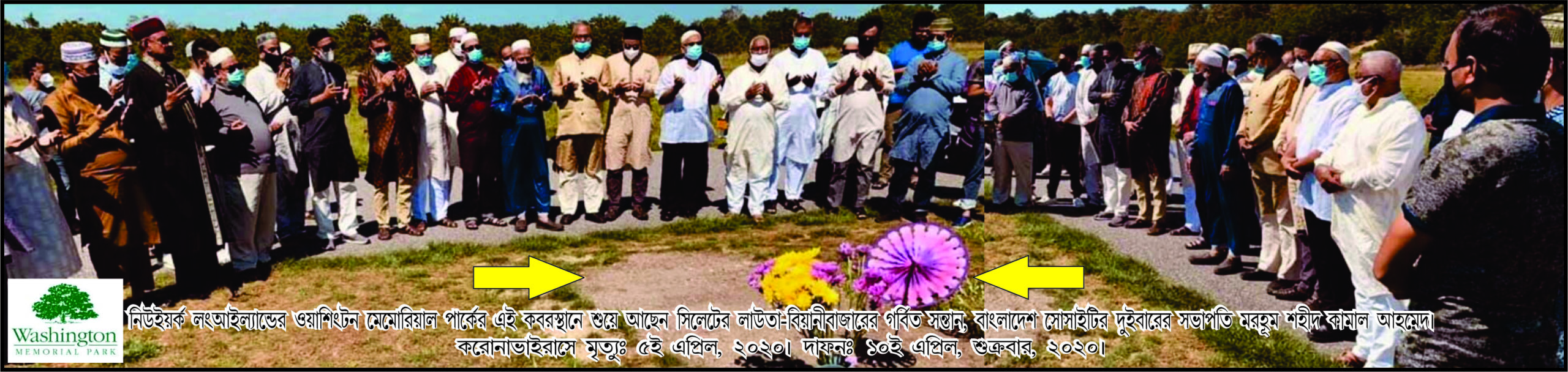 ইউএসএনিউজঅনলাইন.কম ডেস্ক. নিউইয়র্ক : নিউইয়র্ক ওয়াশিংটন মেমোরিয়াল কবরস্থানে শহীদ কামাল আহমেদের কবর জিয়ারতে লাউতাবাসীর এই আয়োজনে জিয়ারত ও মোনাজাত পরিচালনা করেন ইমাম কাজী কায়্যূম। নিউইয়র্কে বাংলাদেশ সোসাইটির দুইবারের সভাপতি সিলেট-লাউতার গর্বিত সন্তান কামাল আহমেদ গত ৫ই এপ্রিল, ২০২০ করোনাভাইরাসে নিউইয়র্কের এলমহার্স্ট হাসপাতালের শাহাদত বরণ করলে ১০ই এপ্রিল, শুক্রবার সেখানে তাঁকে দাফন করা হয়। কামাল আহমেদের অন্তিম ও পরিবারের ইচ্ছানুযায়ী লাউতারই আরেক কৃতি সন্তান নিউইয়র্কের প্রসিদ্ধ ইমাম কাজী কায়্যূম নিজ দায়িত্বগুণেই সে সময়ের করোনাভাইরাস মহামারির প্রতিকুলতা এড়িয়েও মরহূম শহীদ কামাল আহমেদের নামাজে জানাজাটিও পড়িয়েছিলেন। দীর্ঘ সাড়ে চার মাস পর গত রোববার, ৬ই সেপ্টেম্বর ২০২০ দুপুরে মরহূমের প্রিয় লাউতাবাসী এই জিয়ারতটির আয়োজন করলেও প্রবাসীরা যে যখনি সময় পেয়েছেন বা পান, এখানে এসে জিয়ারত করেন। শহীদ কামাল আহমেদের মহিয়সি মাও একই কবরস্থানে সমাহিত হোন বছর তিনেক আগে। ঐদিন একই সাথে সবাই মরহূমা মা’রও কবরটি জিয়ারত করেন।