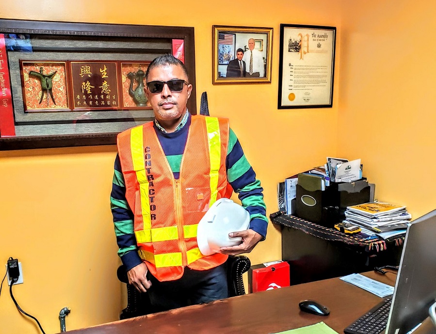 Especially during the pandemic, many frontline workers are nervous about contracting Covid-19 and want to be sure they are wearing the correct safety gear. Hossain lends a hand and advises however he can. He has 20 years of experience running his own construction company, RLB Construction.
