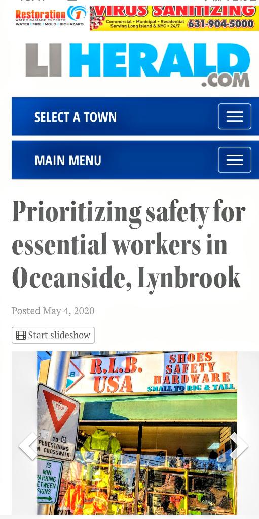 By Briana Bonfiglio : Moe Hossain, owner of RLB Safety and Hardware stores, in Oceanside and Lynbrook, sees his business’ mission becoming more important than ever amid the coronavirus pandemic.