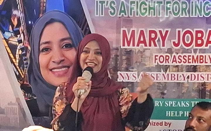 মূলধারার রাজনীতিক ও নিউইয়র্ক স্টেট অ্যাসেম্বলী ডিস্ট্রিক্ট-৩৬ এর অ্যাসেম্বলী মেম্বার পদপ্রার্থী মেরী জোবাইদা বলেন, আমি নির্বাচনে এসেছি নিজের জন্য নায়, নির্বাচনে এসেছি কমিউনিটিকে রিপ্রেজেন্ট করতে। যারা এফোর্ট করতে অক্ষম, কমিউনিটির সেইসব মানুষের জন্য হাউজিং অ্যান্ড ফুড সিকিউরিটি, কোয়ালিটি এডুকেশন সহ সবার জন্য হেলথ ইন্সুরেন্স নিশ্চিত করার লক্ষ্যে আলবেনী সহ সবখানে আমার আন্দোলন অব্যাহত থাকবে।