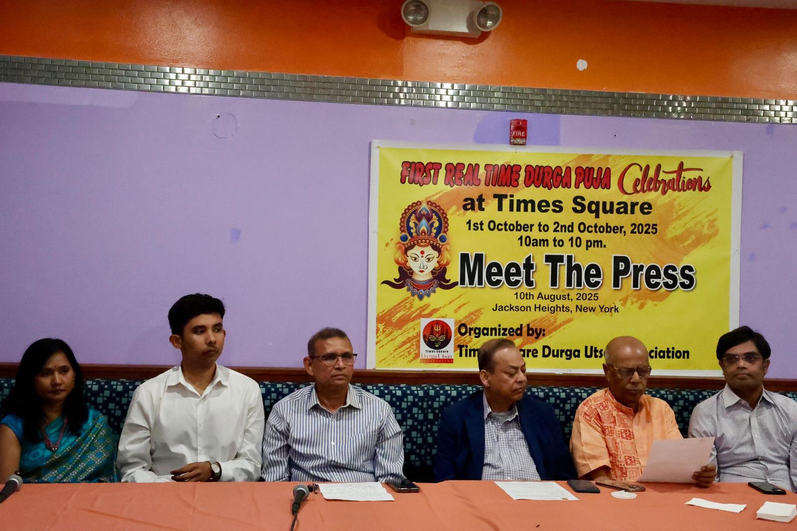 টাইমস স্কয়ারে তিথি অনুযায়ী এই প্রথম শারদীয় দুর্গোৎসব উপলক্ষে আয়োজিত সাংবাদিক সম্মেলনে সাংবাদিকদের বিভিন্ন প্রশ্নের উত্তর দেন প্রধান উপদেষ্টা মৃদুল পাঠক ছাড়াও সভাপতি শশধর হাওলাদার, সহ-সভাপতি কল্লোল বসু, সম্পাদক নিরুপমা সাহা, কোষাধ্যক্ষ সৌম্যব্রত দাসগুপ্ত, উপদেষ্টা সদস্য মিলন আওন ও নির্মল পাল। অনুষ্ঠান সঞ্চালনায় ছিলেন শ্রীয়াঙ্কা বসাক।টাইমস স্কোয়ারের ফাদার ডাফি স্কোয়ারে (লাল সিঁড়ির পাশে) পূজার থিম ও মণ্ডপ নির্মাণ করছেন কলকাতার থিম পূজার পথিকৃতেরা, আর টাইমস স্কোয়ারে গড়ে তোলা হবে কলকাতার ম্যাডক্স স্কোয়ার ও ঢাকার ঢাকেশ্বরী মন্দিরের আবহ।