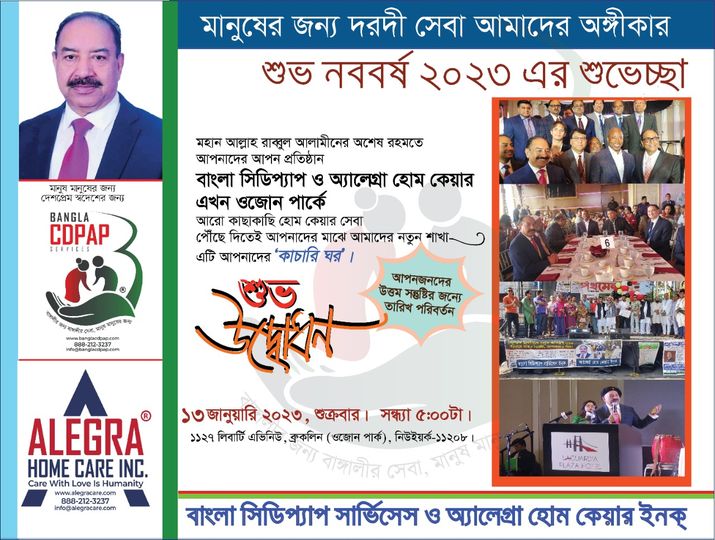 নিউইয়র্কের ওজন পার্কে বাংলা সিডিপ্যাপ ও অ্যালেগ্রা হোম কেয়ার উদ্বোধন ১৩ জানুয়ারি