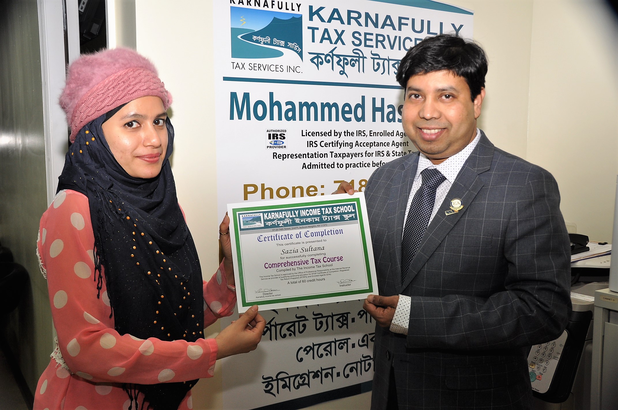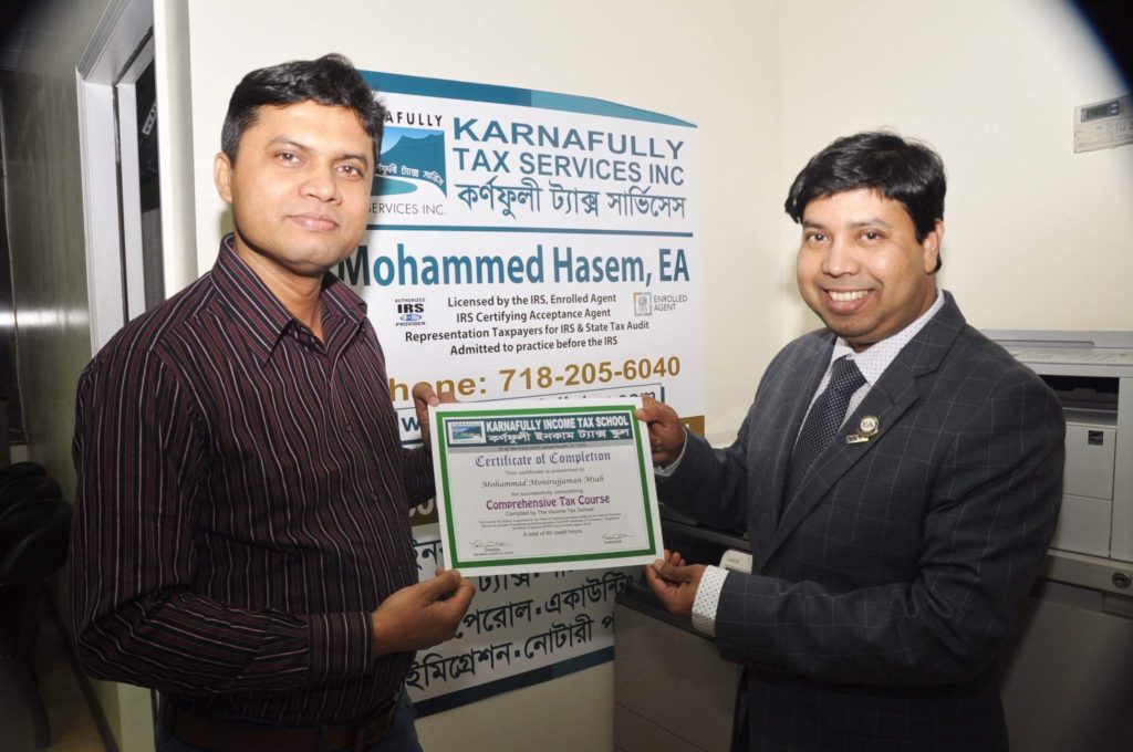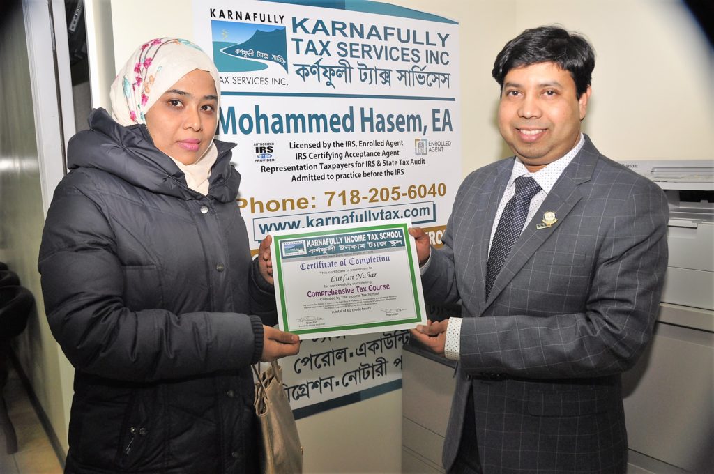 কর্ণফুলী ইনকাম ট্যাক্স স্কুল কর্তৃপক্ষ জানিয়েছে, নিউইয়র্কের জ্যাকসন হাইটসে বাঙালী মালিকানায় স্থাপিত প্রথম ট্যাক্স প্রফেশনাল শিক্ষা প্রতিষ্ঠান কর্ণফুলী ইনকাম ট্যাক্স স্কুলের প্রথম ব্যাচের ক্লাস শুরু হয় গত ১০ সেপ্টেম্বর। তিন মাসব্যাপি এ প্রশিক্ষণ কোর্সে ১৫ জন শিক্ষার্থী অংশ নেন। ইনকাম ট্যাক্স স্কুলটির প্রতিষ্ঠাতা কর্ণফুলী ট্যাক্স সার্ভিসেস’র প্রেসিডেন্ট মোহাম্মদ হাসেম জানিয়েছেন, ট্যাক্স কোর্সে অংশগ্রহণকারী শিক্ষার্থীদের ট্যাক্স প্রিপারেশন অ্যান্ড প্যøানিং বিষয়ে কম্প্রিহেনসিভ প্রশিক্ষণ দেয়া হয়। এই অ্যানুয়েল ফাইলিং সিজন প্রোগামে অভিজ্ঞ ইন্সট্রাকটরগণ ক্লাস নেন। তারা ইনকাম ট্যাক্স ফাইল করার নিয়ম-কানুনসহ ট্যাক্স বিষয়ে হাতে-কলমে যাবতীয় শিক্ষা দেন শিক্ষার্থীদের। তিন মাসে ৬০ ঘন্টার ১৮সিই ক্রেডিটের এ কোর্সে অংশ নেয়া শিক্ষার্থীদের গড়ে তোলা হয়েছে ট্যাক্স প্রফেশনাল হিসেবে। সার্টিফিকেট প্রাপ্তরা নিজেদের নিয়োজিত করতে পারবেন ট্যাক্স প্রফেশনে। ট্যাক্স প্রিপেয়ার হিসেবে তাদের নাম এন্ট্রি থাকবে আইআরএস’র ডাটা বেইসে।
