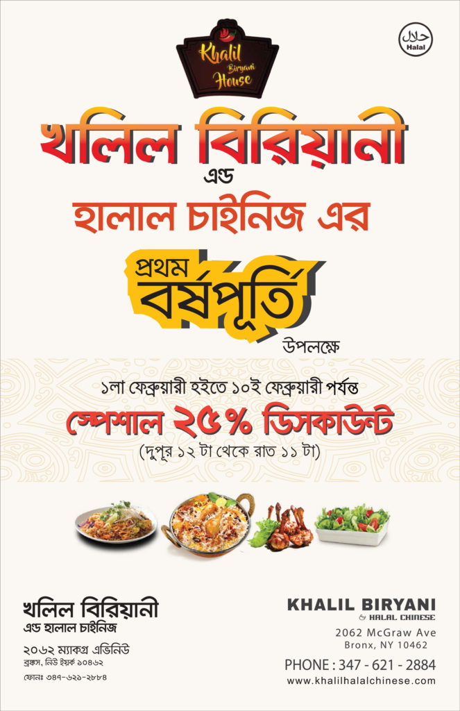 নিউইয়র্কের খলিল বিরিয়ানী অ্যান্ড হালাল চায়নিজের বর্ষপূর্তি উৎসব বুধবার