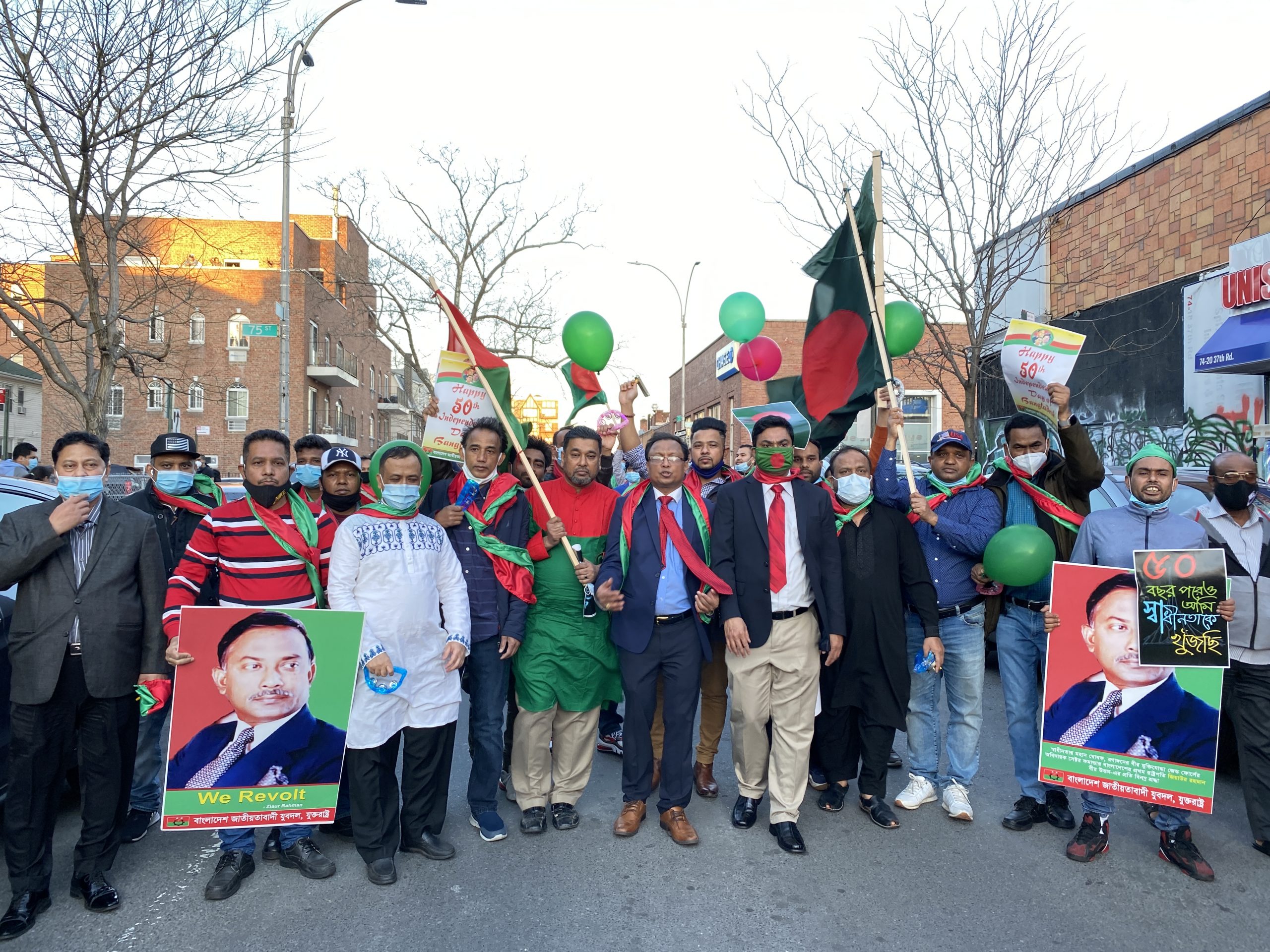 ইউএসএনিউজঅনলাইন.কম ডেস্ক, নিউইয়র্ক: করোনা পরিস্থিতির মধ্যে স্বাস্থ্যবিধি মেনে গত ২৬ মার্চ নিউইয়র্কের জ্যাকসন হাইটসে একটি বর্ণাঢ্য র্যালির আয়োজন করে যুক্তরাষ্ট্র যুবদল। এটা কোন সাধারণ র্যালি ছিলো না। সুবর্ণজয়ন্তীকে স্মরণীয় এবং আনন্দময় করতেই যত আয়োজন। র্যালিতে অংশগ্রহণকারী সকলকে পরিয়ে দেয়া হয় লাল সবুজের পতাকা। হাতে ছিলো বাংলাদেশের জাতীয় পতাকা। স্বাধীনতার ঘোষক শহীদ প্রেসিডেন্ট জিয়াউর রহমানের বিশাল বিশাল ছবিসম্বলিত প্রতিকৃতি, মুখে ছিলো বাঁশি, কারো হাতে বাজনা, কারো হাতে পোস্টার, কারো হাতে ফেস্টুন, কারো হাতে প্লেকার্ড, পোশাকে ছিলো বাঙালিয়ানা।